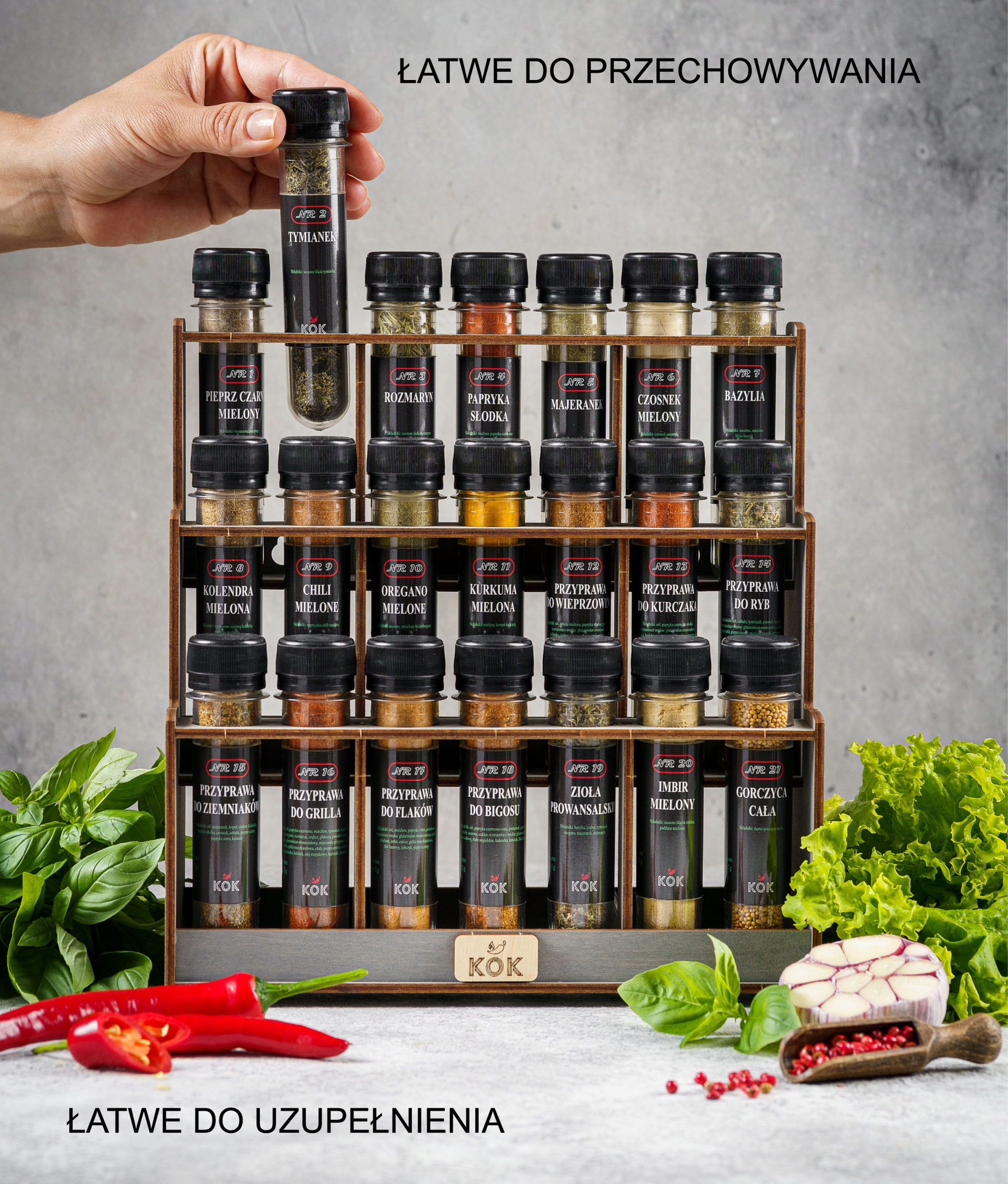 - Організація: допомагає підтримувати кухню в порядку та порядку. Спеції зберігаються в одному місці, що дозволяє легко знайти потрібну спецію.