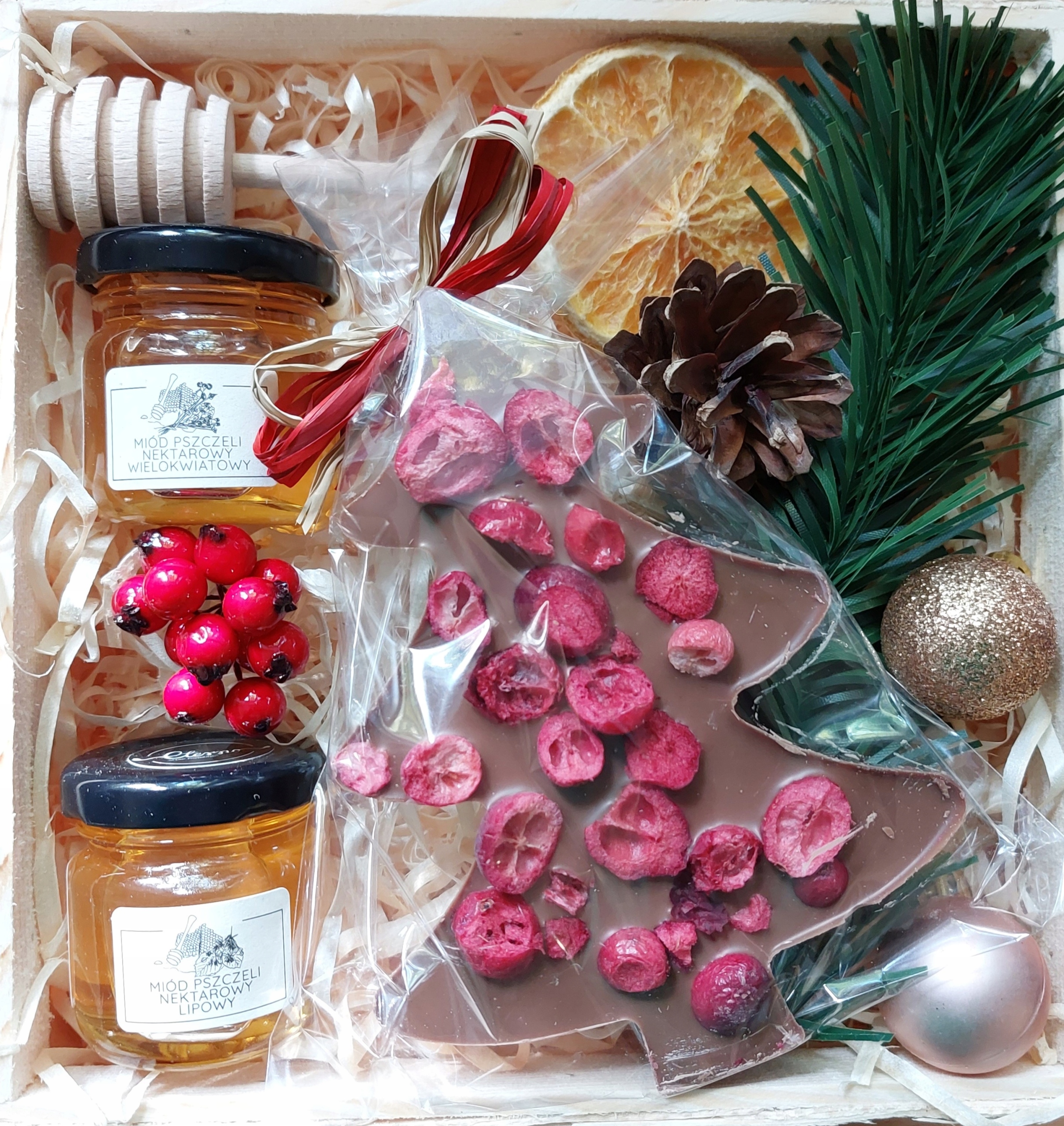 Все це упаковано в екологічну коробку, наповнену вовною та прикрашену аксесуарами, у святковій атмосфері.