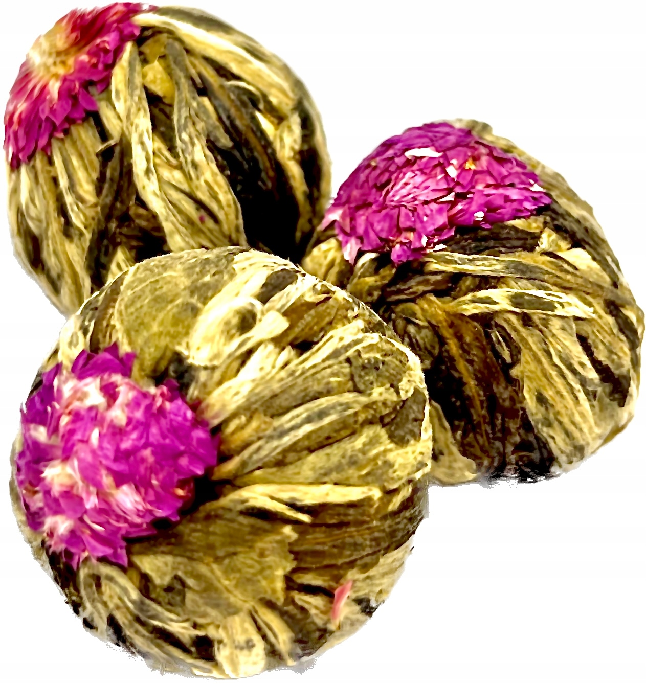 Зелений чай навколо Квітка Лічі - Цей чай є витвором мистецтва, що поєднує в собі надзвичайні візуальні якості, що супроводжують заварювання, і вишуканий, ніжний смак готового настою. Квітка лічі дуже ретельно загорнута в цілі листя китайського зеленого чаю. Під час варіння кулька розквітає, виділяючи надзвичайний смак і аромат.
