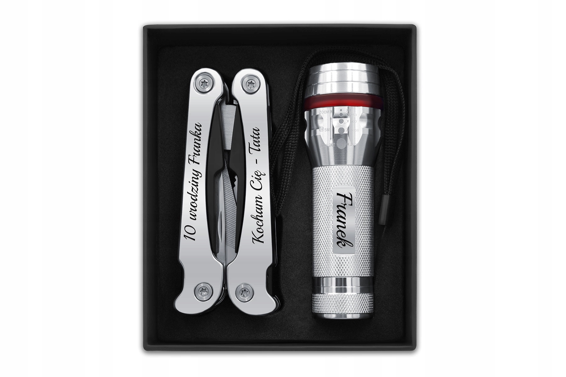 Подарунковий набір Мультитул LED Ліхтарик ГРАВІЮВАННЯ для чоловіків Срібло