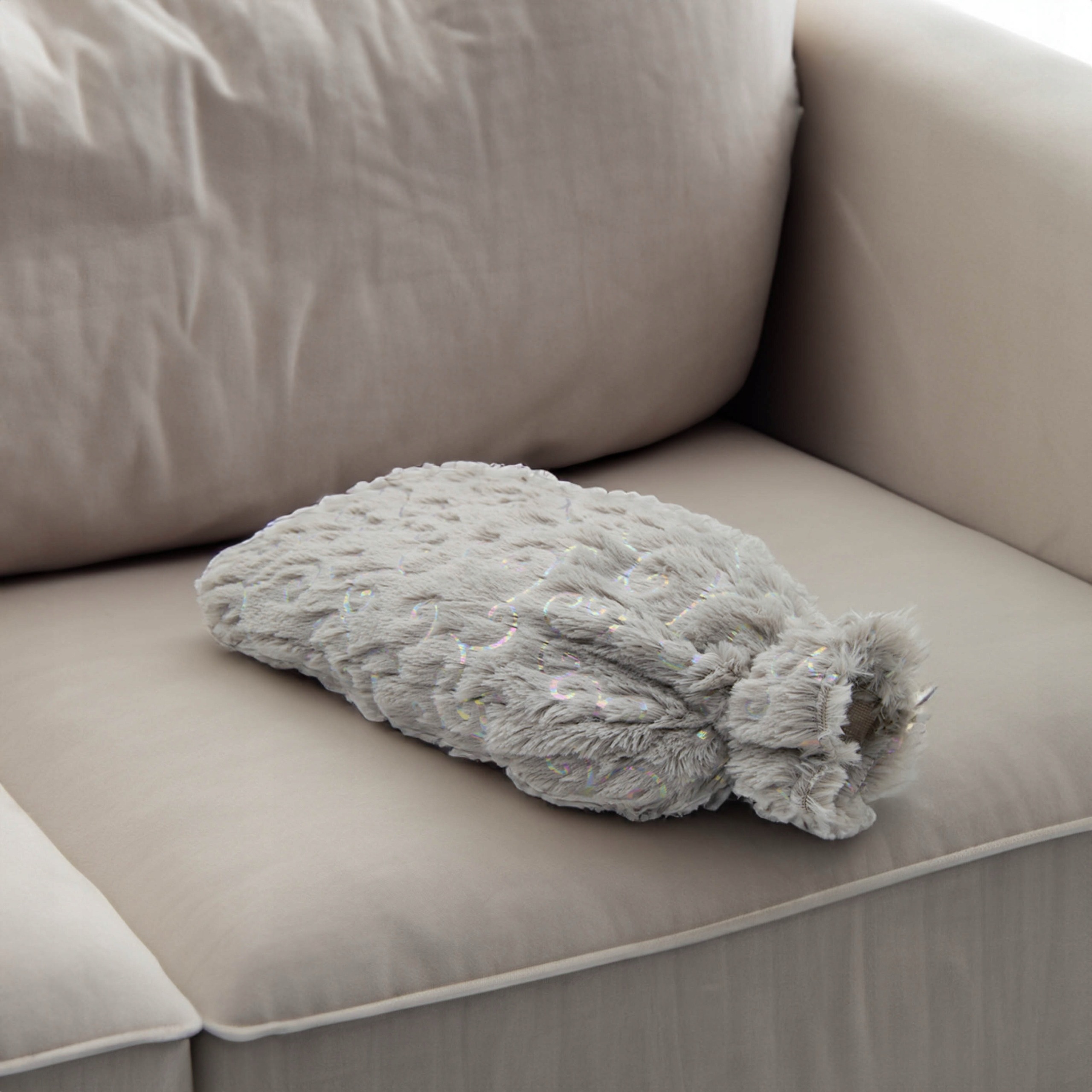 - пляшка з гарячою водою в сірому чохлі.