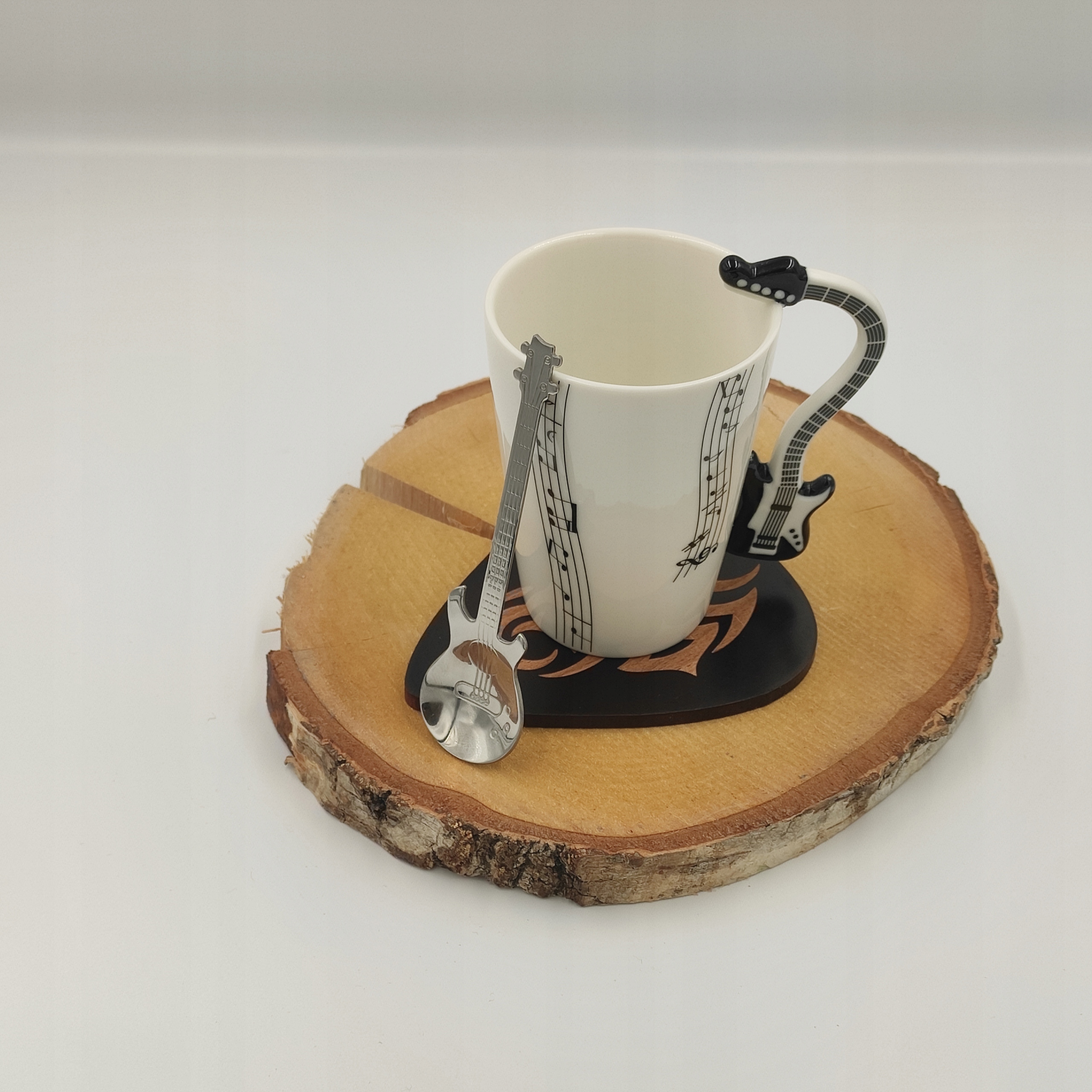 ✅ Високоякісний порцеляновий стакан250мл з ручкою у формі чорно-білої електрогітари p>