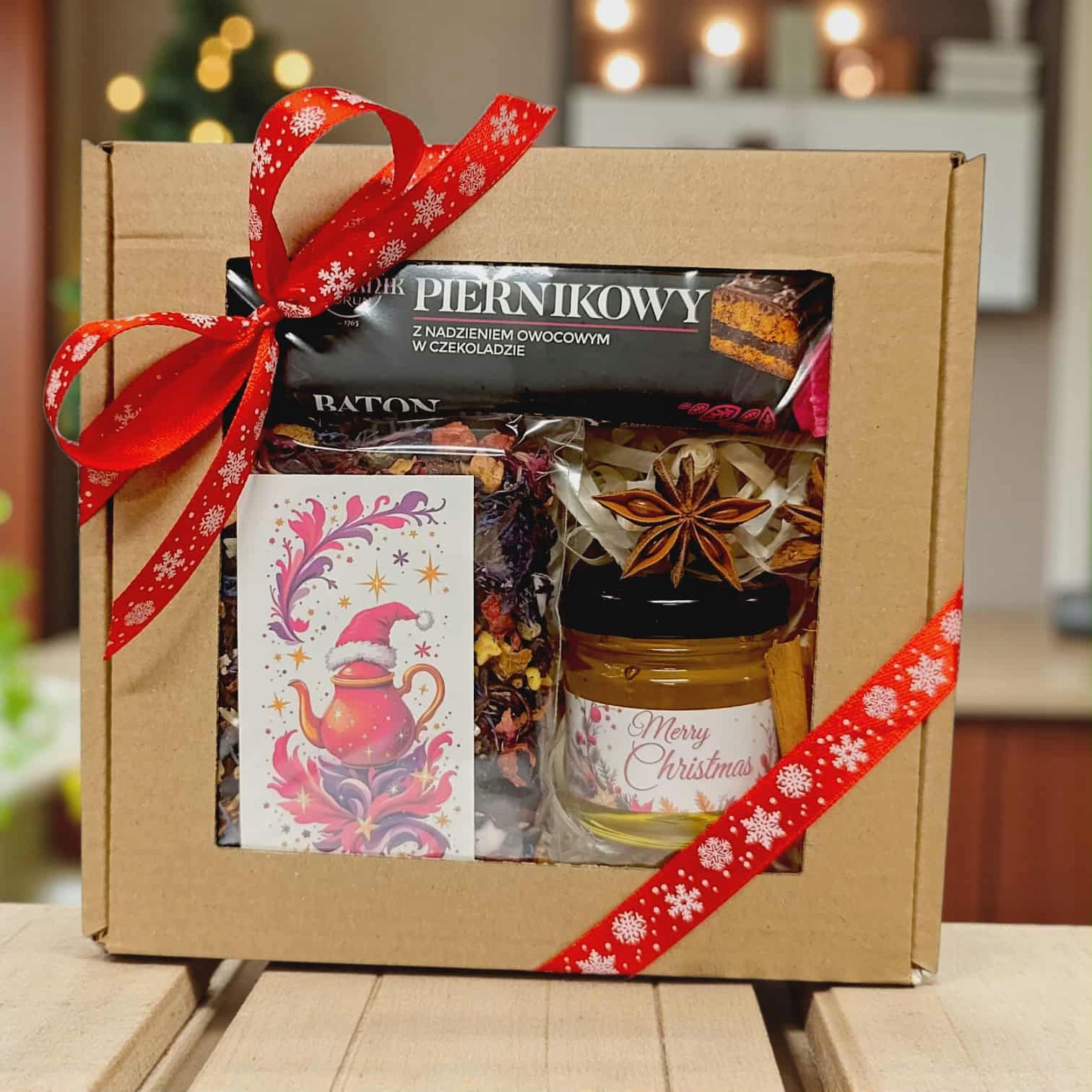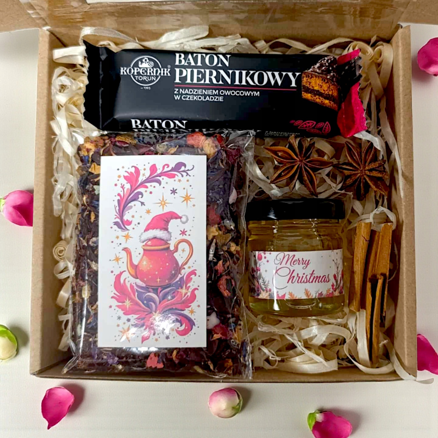 Подарунковий набір Різдвяний чай Мед Пряниковий батончик Подарунок Діду Морозу
