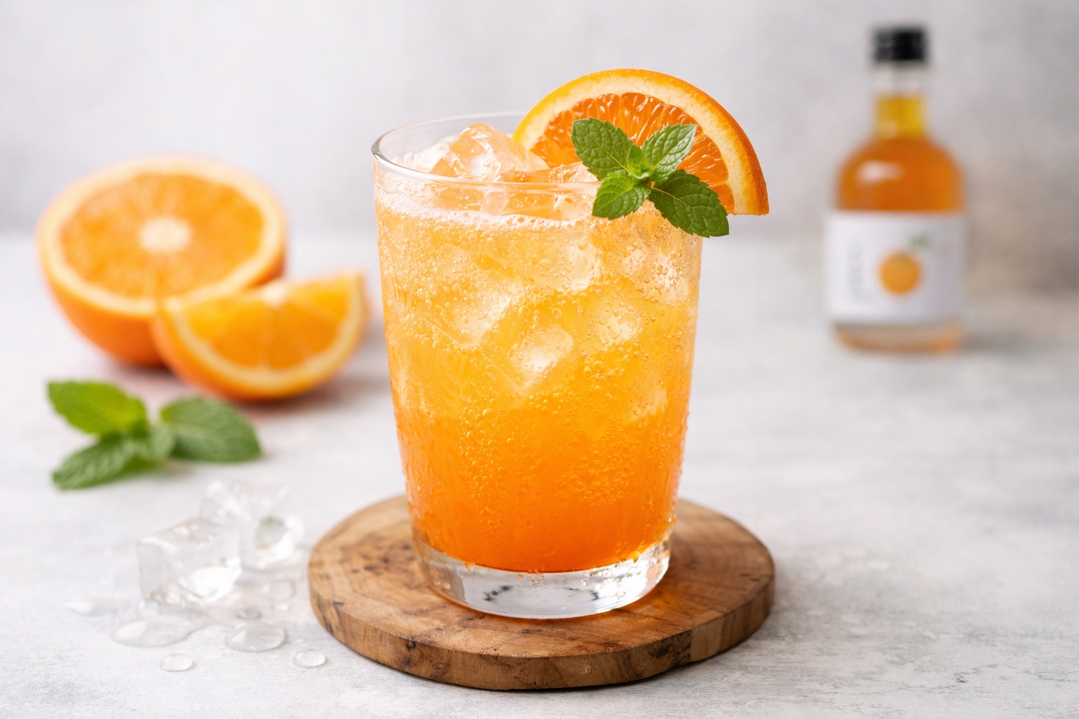 - Апельсиновий сироп (50 мл) – готується зі свіжовичавленого апельсинового соку, з виразним цитрусовим смаком