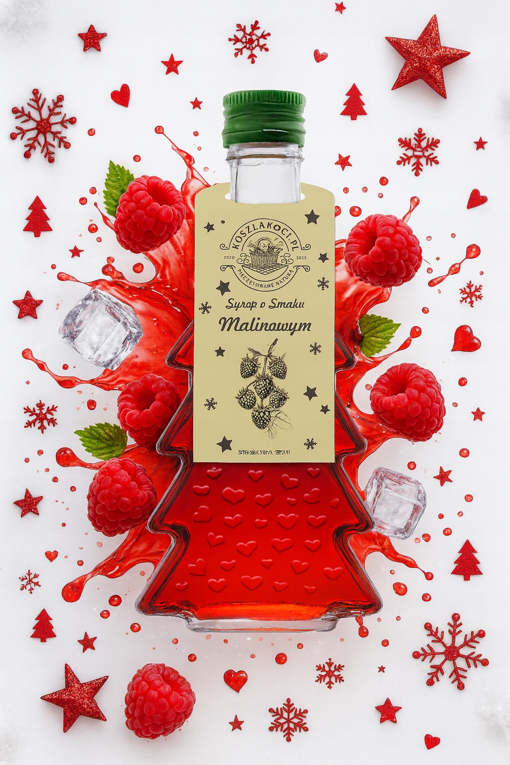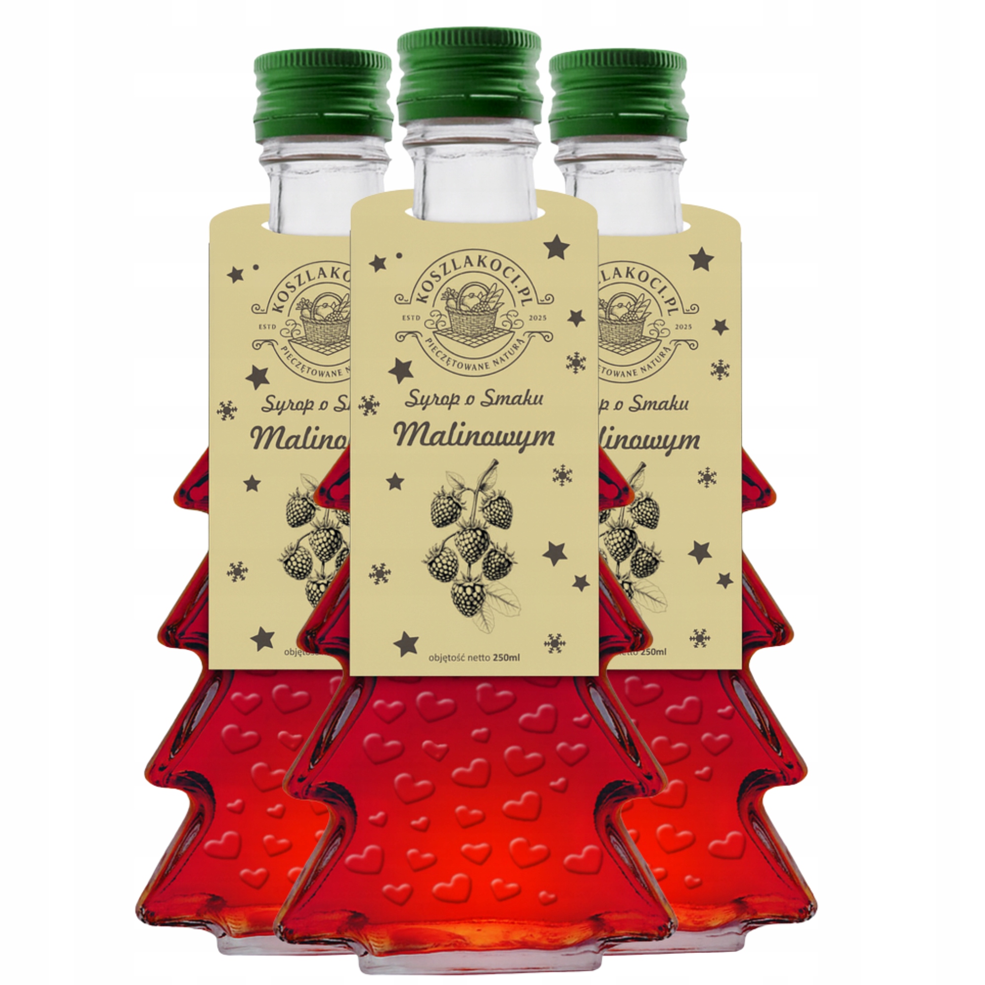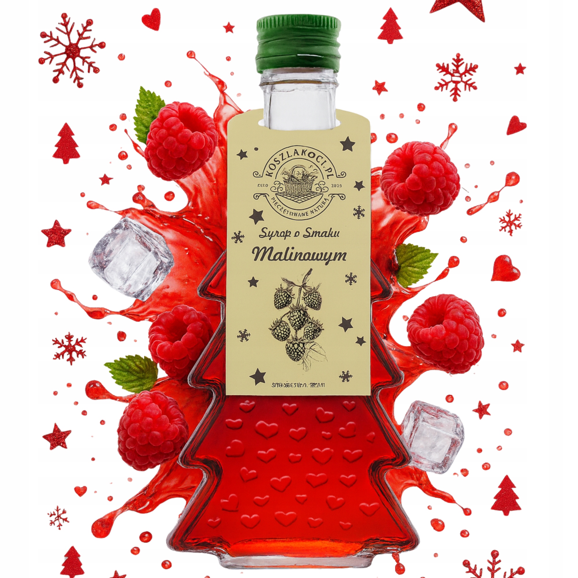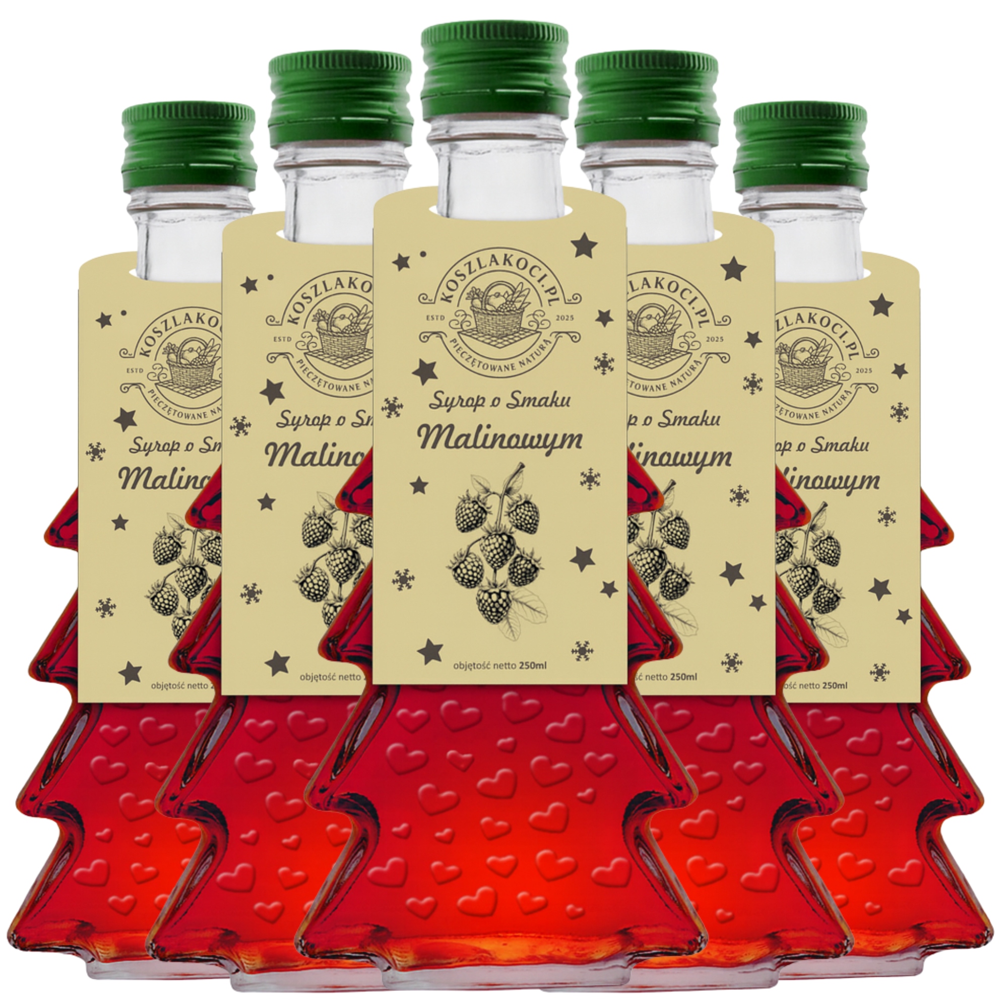 ПОДАРУНКОВИЙ НАБІР СИРОПІВ СМАКУ МАЛИНИ РІЗДВОВА ПЛЯШКА ЯЛИНКА x5