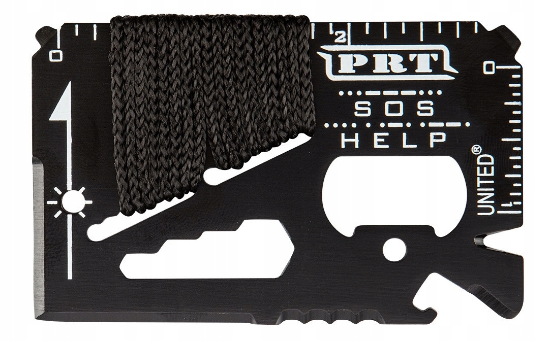- Багатофункціональна картка з нержавіючої сталі (відкривачка для пляшок, консервний нож, пила, гайковий ключ) вушко 4-7 мм, рулетка, плоска викрутка, ніж, паракорд)