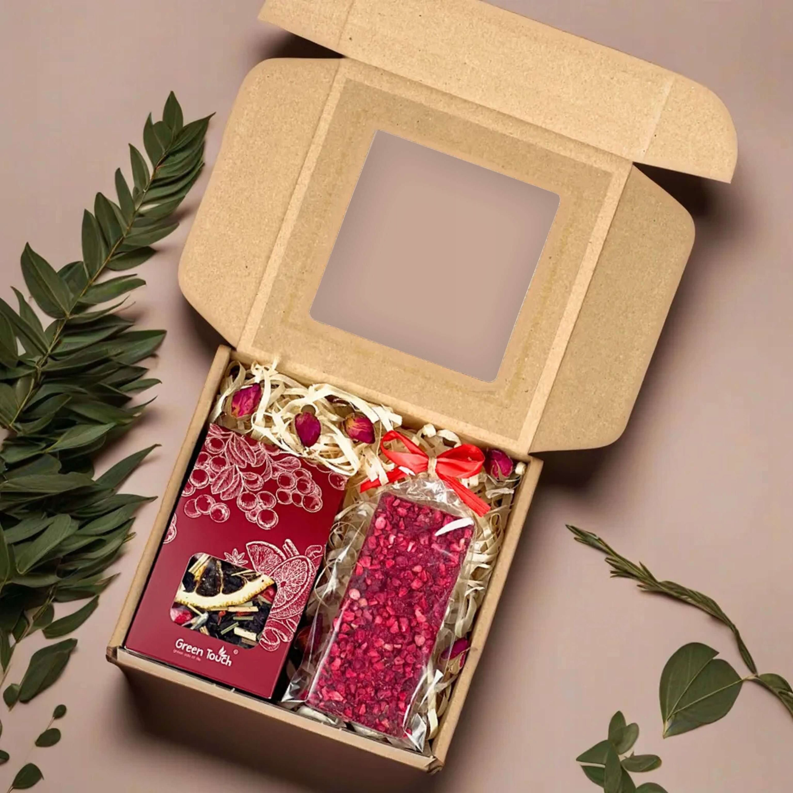 ПОДАРУНКОВИЙ НАБІР - подарункова коробка з чаєм та шоколадом до жіночого дня