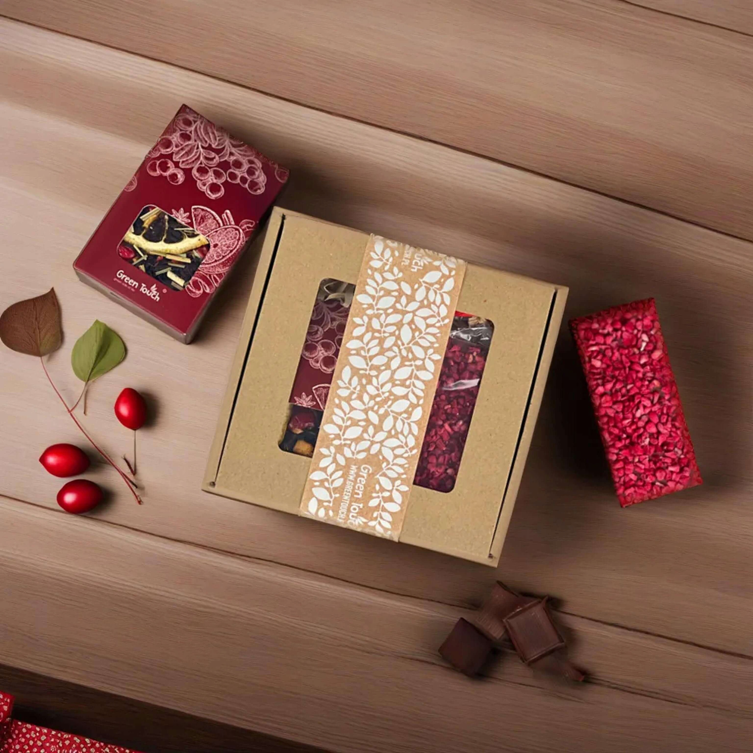 - Чай листовий преміум Green Touch 30 г купаж найкращого чорного чаю з фруктами та квітами в елегантній червоній коробці.