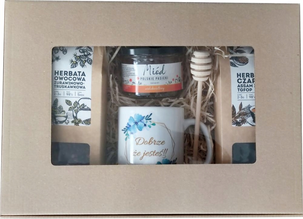 ПОДАРУНКОВИЙ НАБІР ВЕЛИКА КОРОБКА КОШИК ПОДАРУНОК У КОРОБЦІ КРУЖКА МЕДУ ТА ЧАЮ Zp1