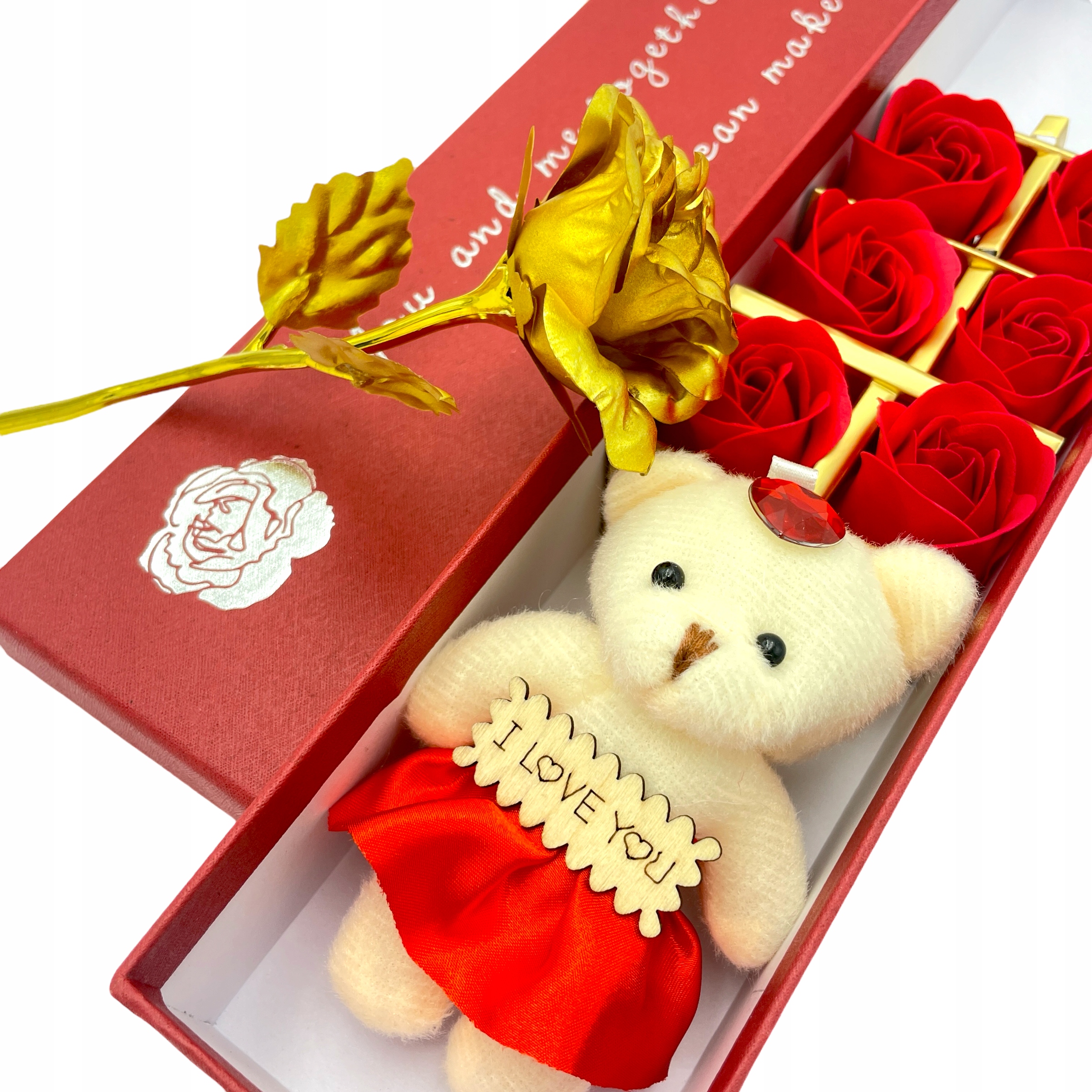 набору подарунків, що складається з вічної троянди, мильних пелюстків троянд та чарівного плюшевого плюшевого ведмедя, це ідеальне поєднання Розкіш, делікатність та унікальність. Виражає більше 1000 слів або інших дрібничок.