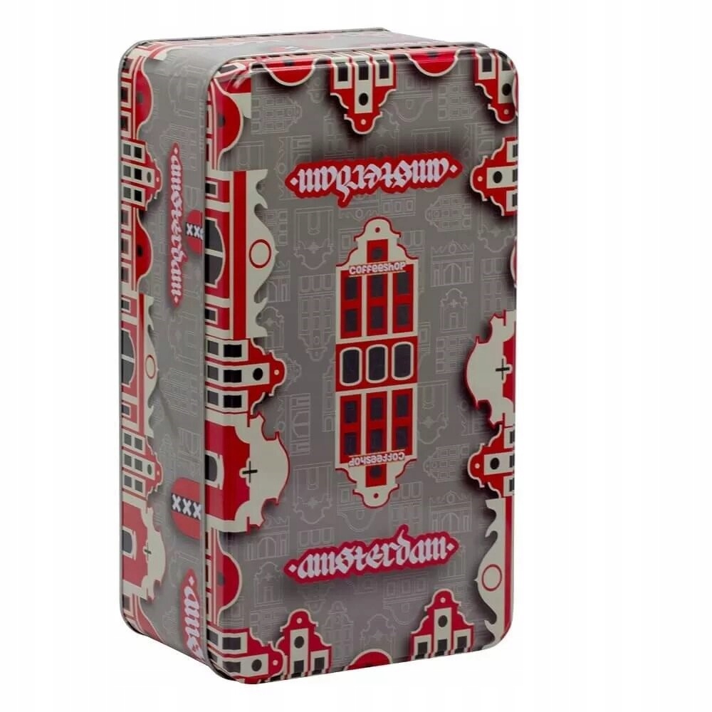 Все це упаковано в елегантну металеву коробку з амстердамським принтом.