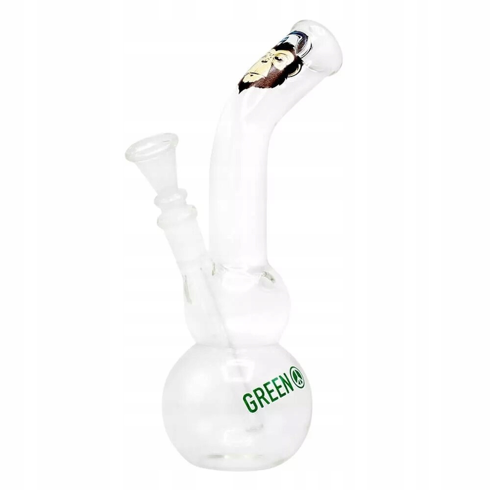 - Зелена лінія логотипу в основі та малюнок мавпи на трубі для бонга