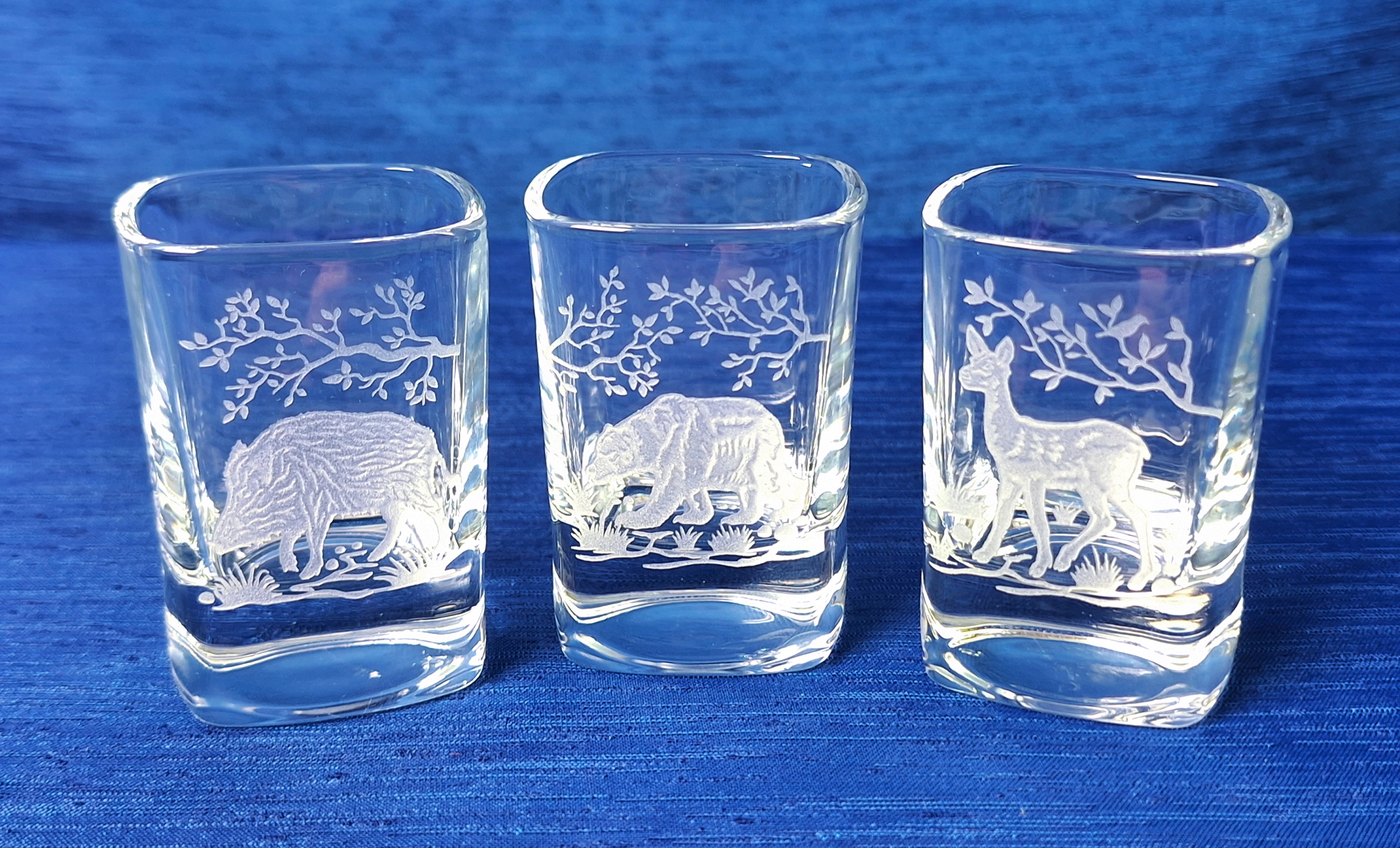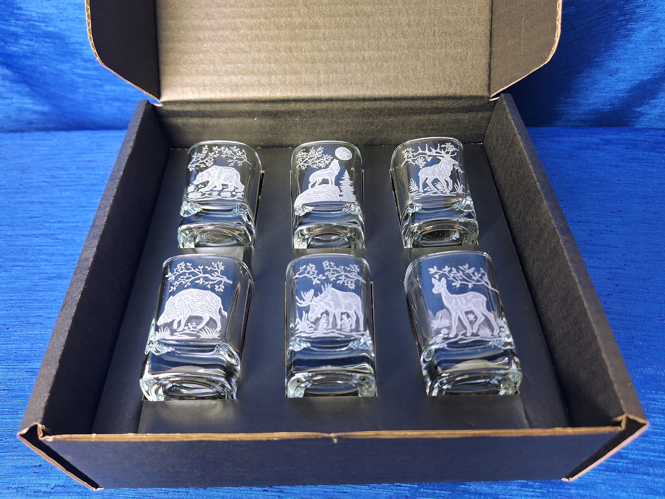 Подарунковий набір з окулярів горілки 50мл, прикрашених полюванням гравірування