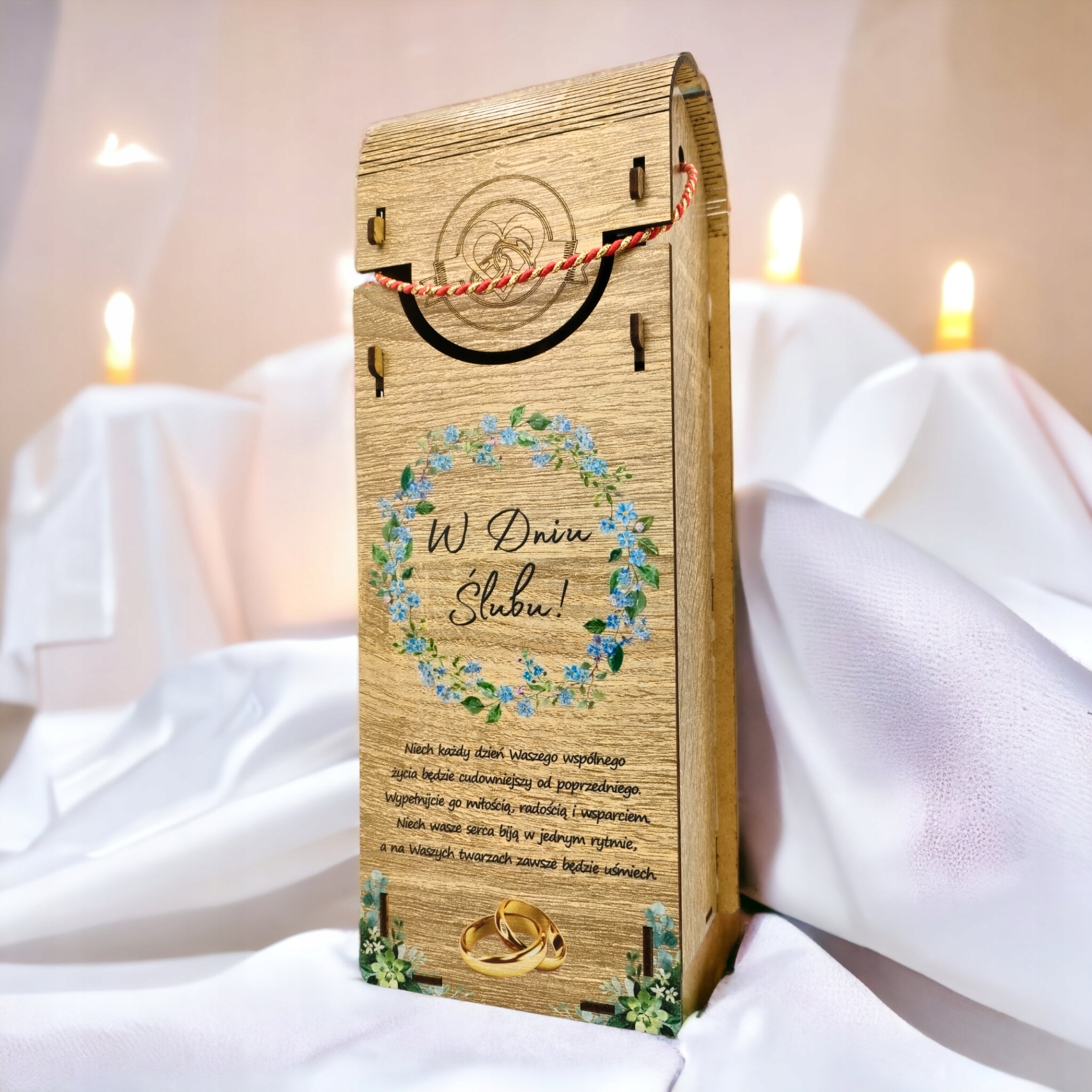 Ця коробка є символічним місцем для зберігання пляшки вина, яку наречений і наречена можуть зберігати для багатьох. років і відкрити за особливих обставин, щоб відсвяткувати ваше кохання та згадати цей особливий день. Кожного разу, коли вони відкривають коробку і тягнуться до пляшки вина, вони матимуть можливість зануритися в атмосферу весілля, згадати емоції, емоції та радість, які супроводжували їх під час церемонії.