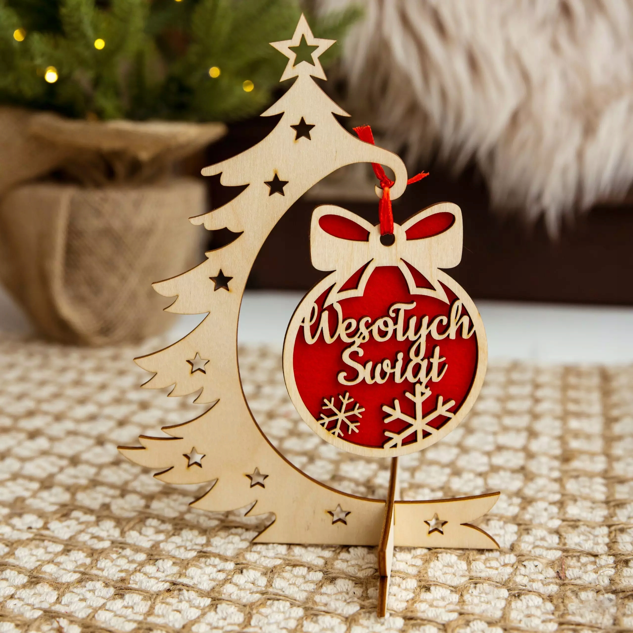 Дерево надає прикрасам теплий, сільський характер, який ідеально поєднується з різдвяною атмосферою.
