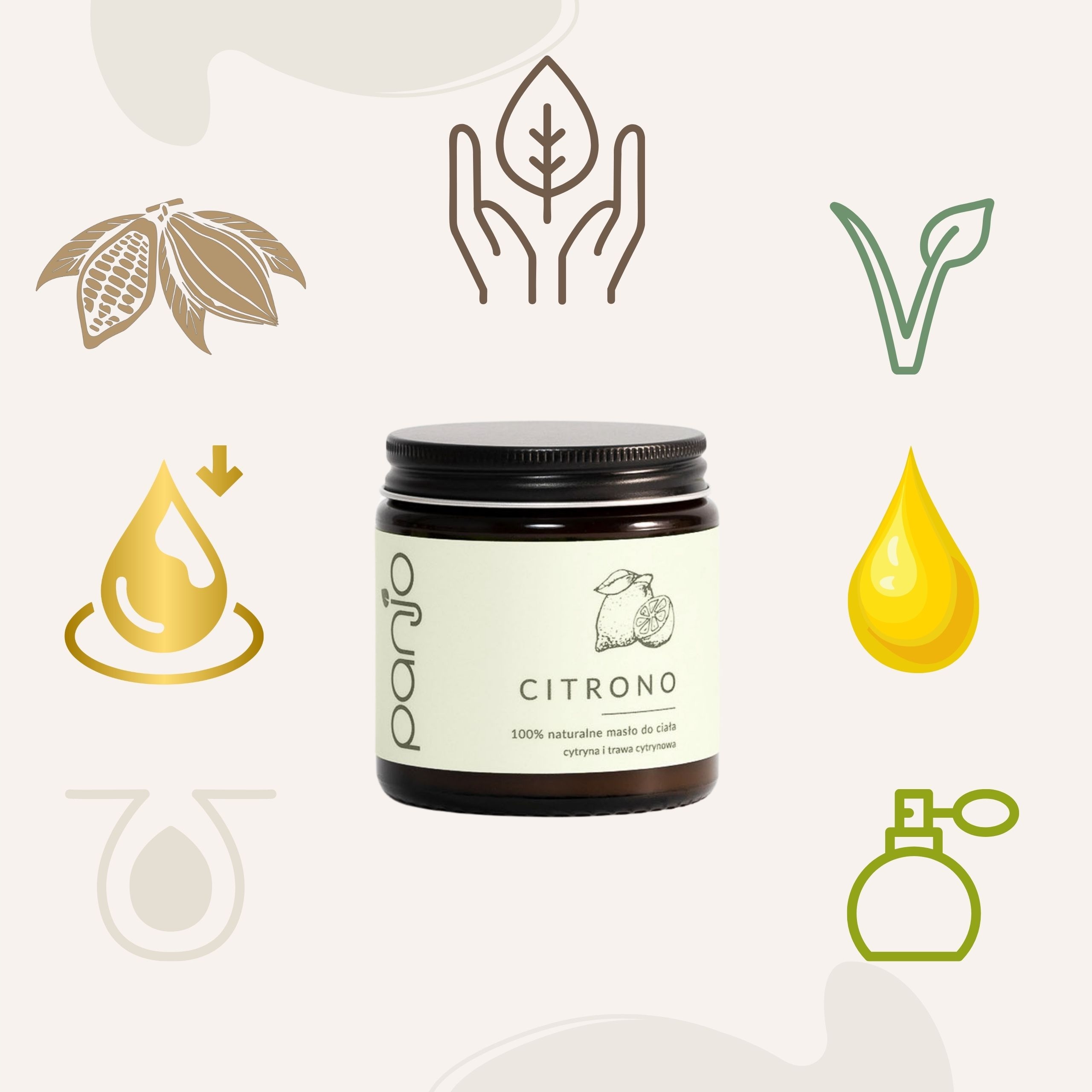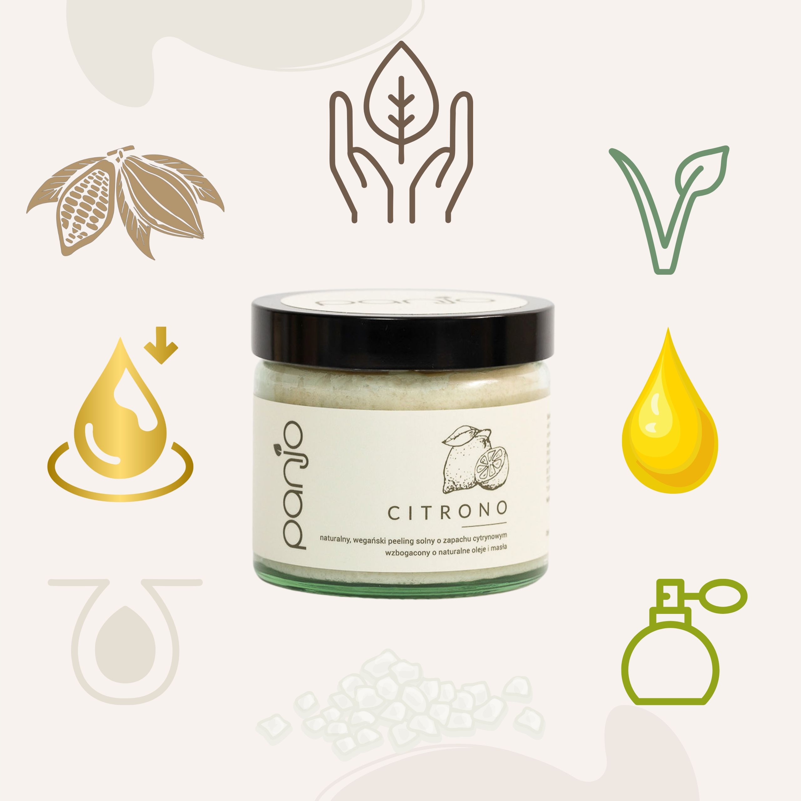 ✅ Citrono - це справжнябомба дорогоцінних інгредієнтів: масло манго, масло ши, масло какао роблять мус не тільки пілінгом, а й глибоко зволожують шкіру.