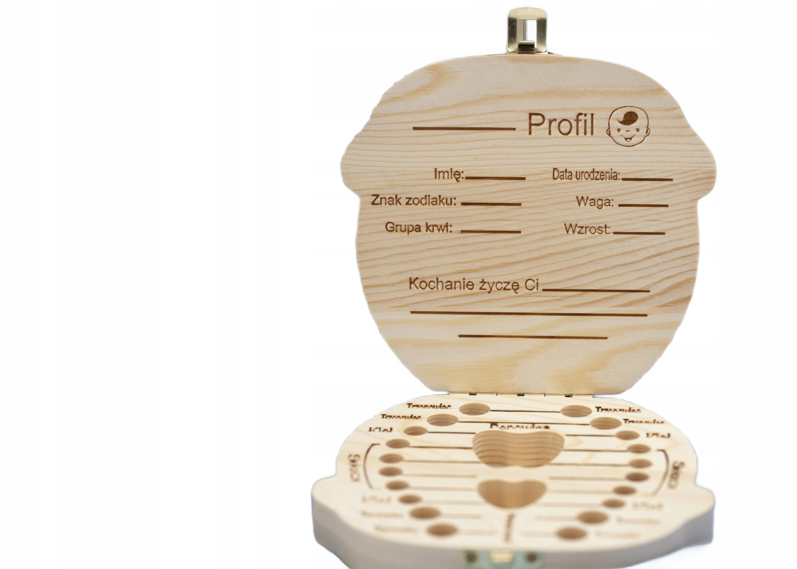 Подарунок, сувенір, контейнер для молочних зубів на польській мові, з дерева!