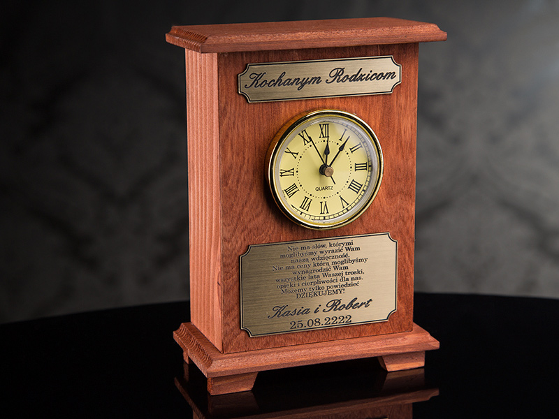 Ви не можете вирішити, який подарунок вибрати на подяку батькам або на річницю весілля? Збираєтеся на сімейне свято і не знаєте, що купити імениннику? Купіть цю статуетку зараз. Це красивий дерев'яний комод з прямим гравіюванням на спеціальному гравіруючому ламінаті. Це наша оригінальна ідея для подарунку батькам або на будь-який інший випадок. Додатково пофарбовані та лаковані. В набір входить коробка з дуже дорогої березової фанери 8мм в кольорі суміш палісандра і червоного дерева. Зовні вся коробка покрита лаком, що надає їй легкого блиску. Крім того, він має стару золотисту застібку та петлі. Як безкоштовний подарунок ми додаємо дуже якісне наповнення з необроблених дерев’яних смуг. Одержувач точно буде в захваті. коли бачать такий гарно зроблений подарунок :) p>