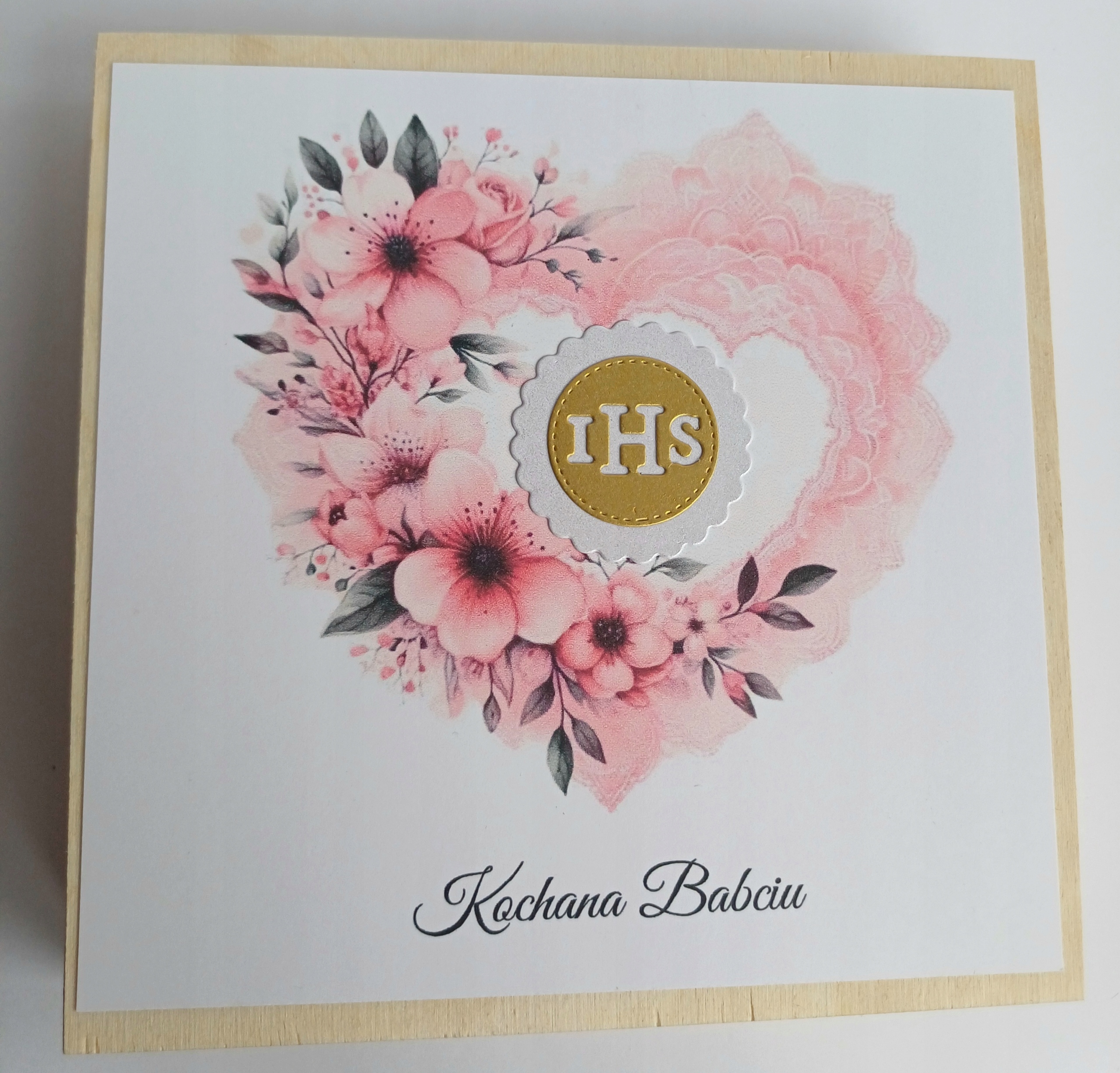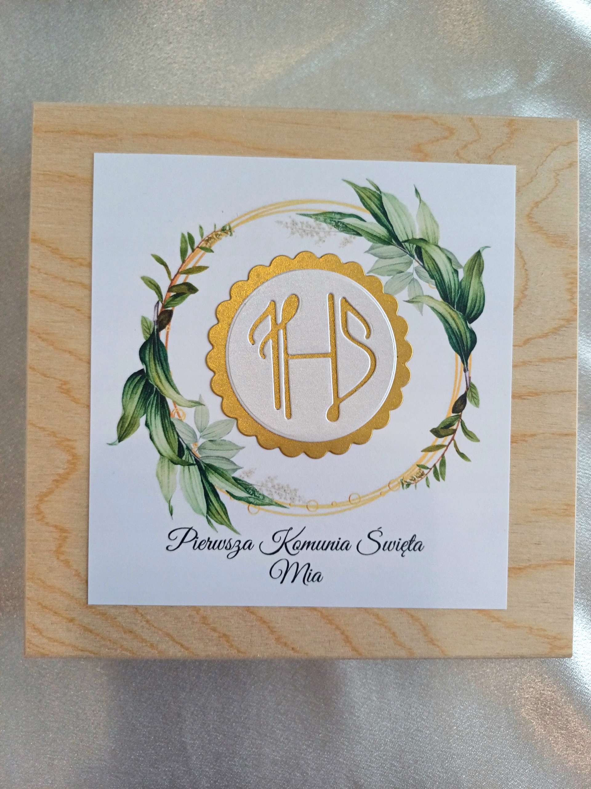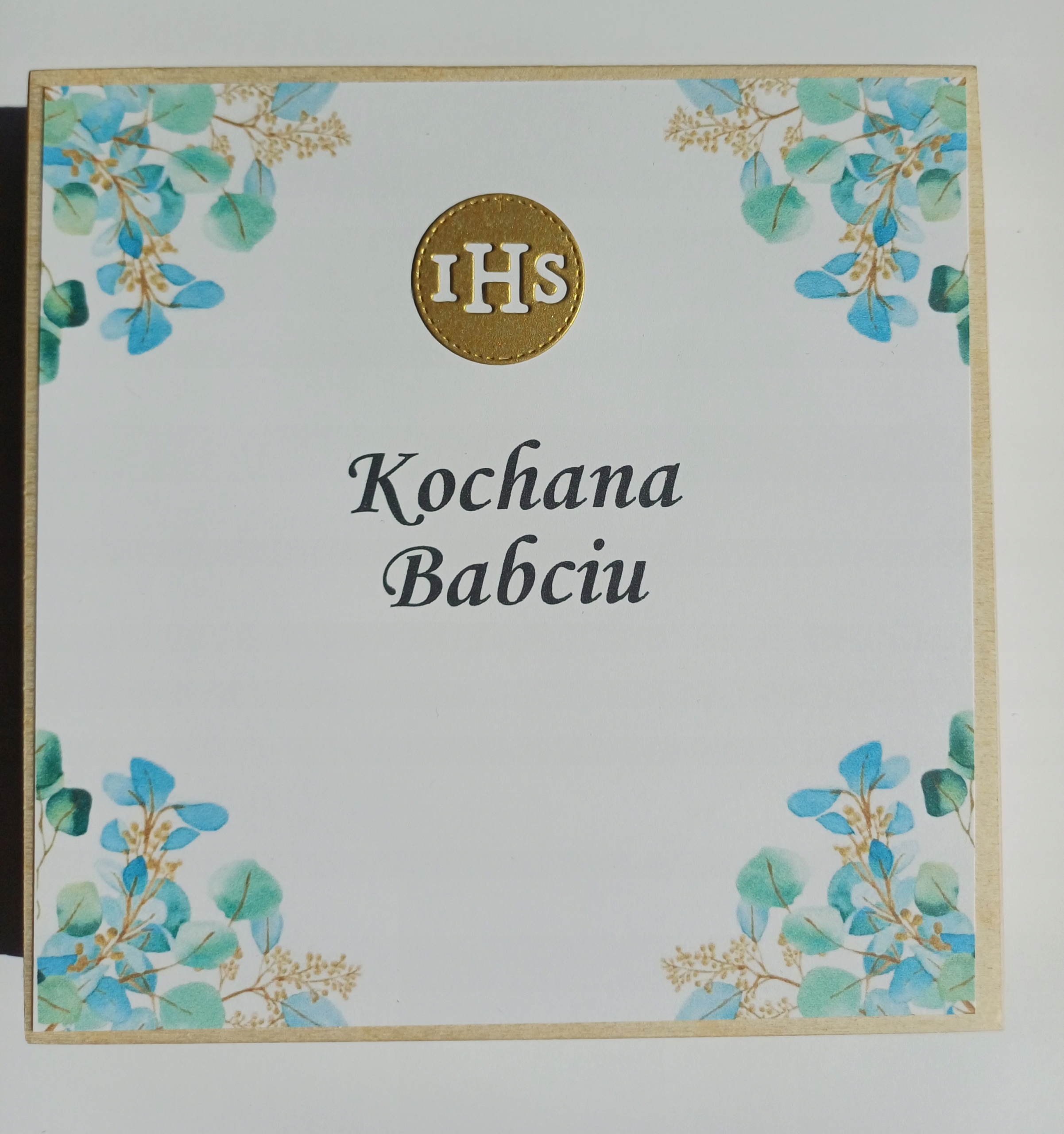 На верх коробки наклеєна декоративна картинка в обраному візерунку. Можливість розміщення власного тексту, напр. Для Дорогого хрещеного батька.