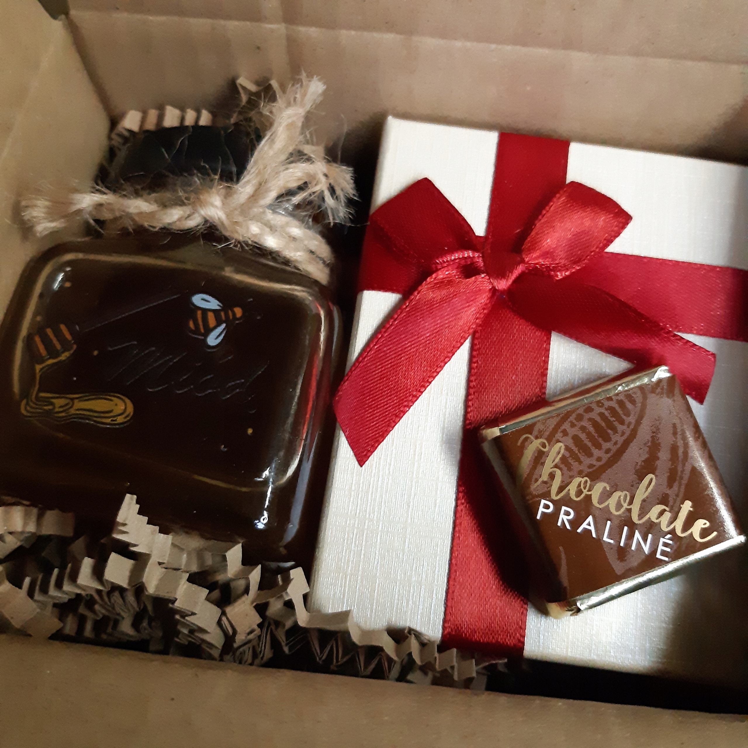В декоративній коробці з довільно вибраною цитатою з БІБЛІЇ - з медом з нашої пасіки "KarpieLowe Miody"