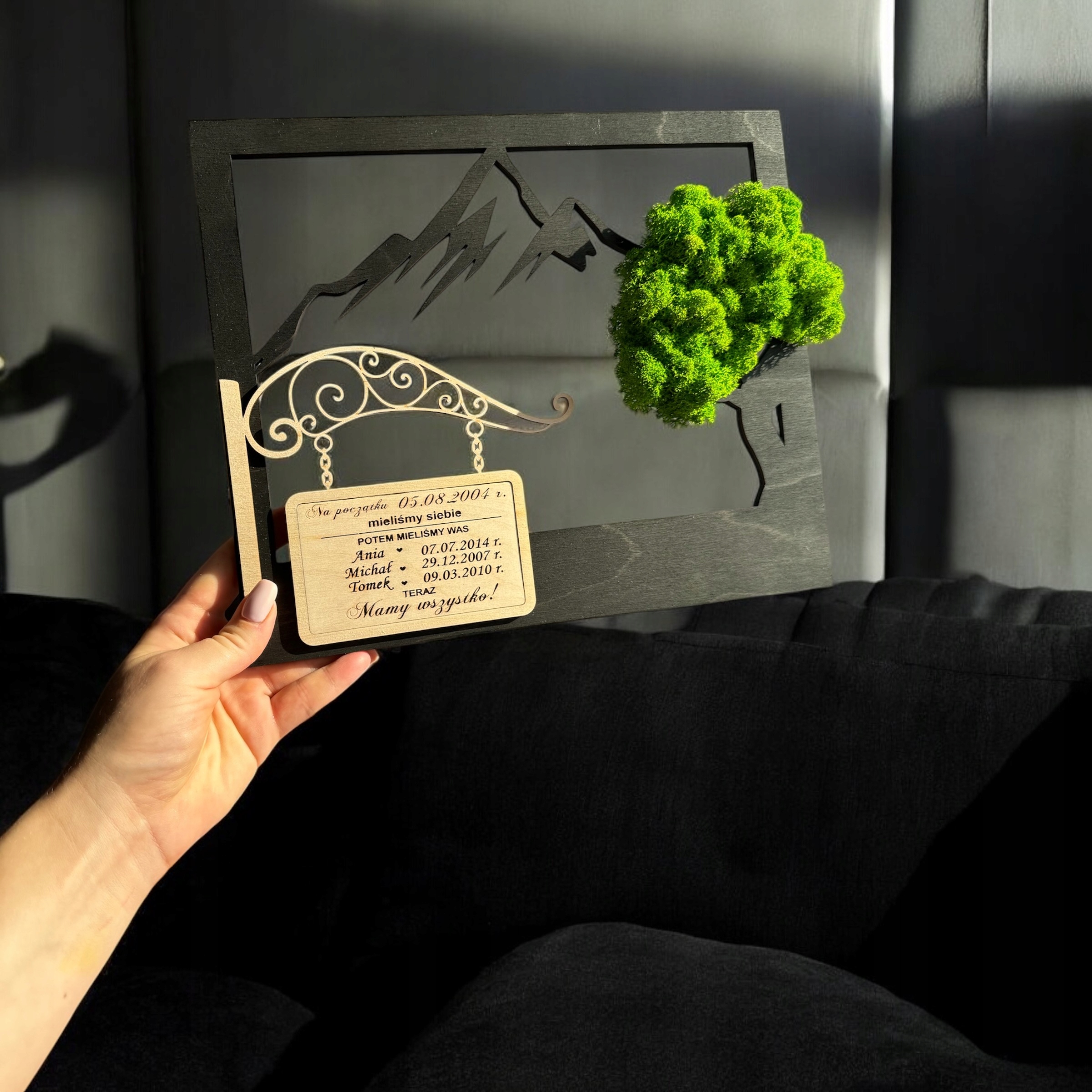 ✌️Плакет з гравіюванням - Персоналізована сімейна історія, вигравірувана в деревині з особливою обережністю. Містить найважливіші дати та події, такі як весілля, народження дітей та інші важливі моменти.