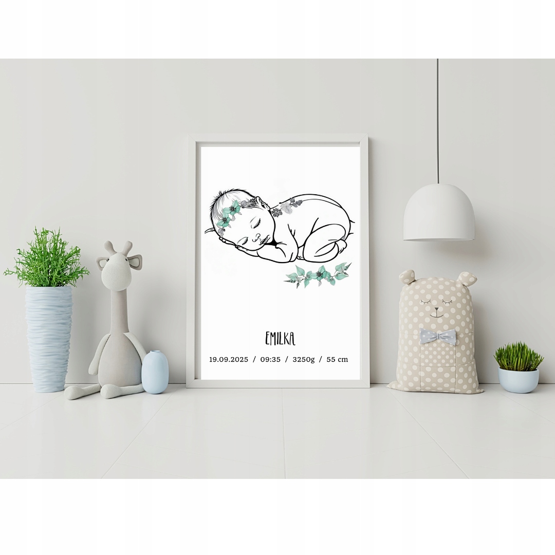 np. Ім'я дитини, 19/09/2025 / 09:35 / 3250г / 55 см, схема 1, вертикальна, блиск.