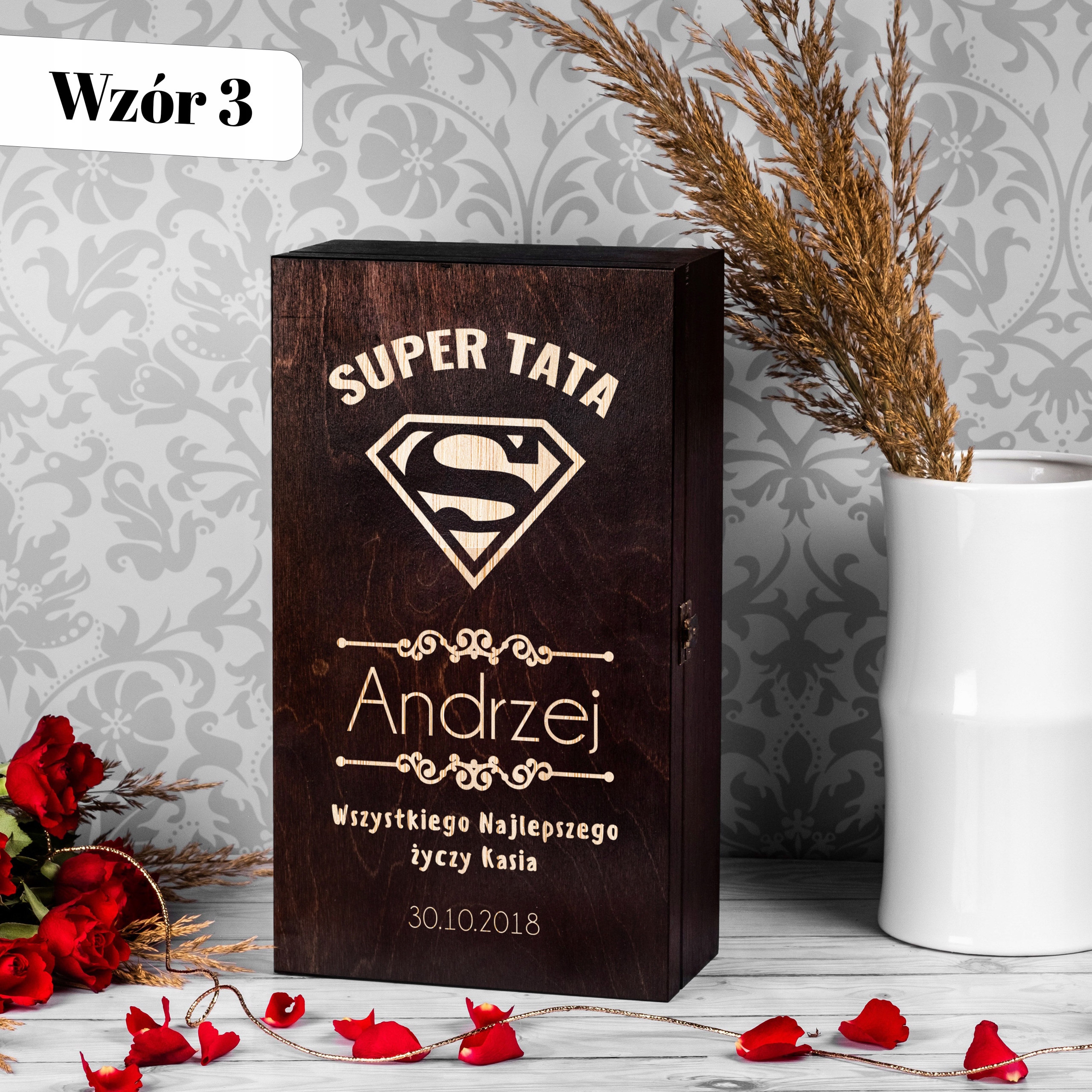 ⭐ Подвійний закритий забарвлений винний ящик з гравюром - ідеальний подарунок для Дня батька!
