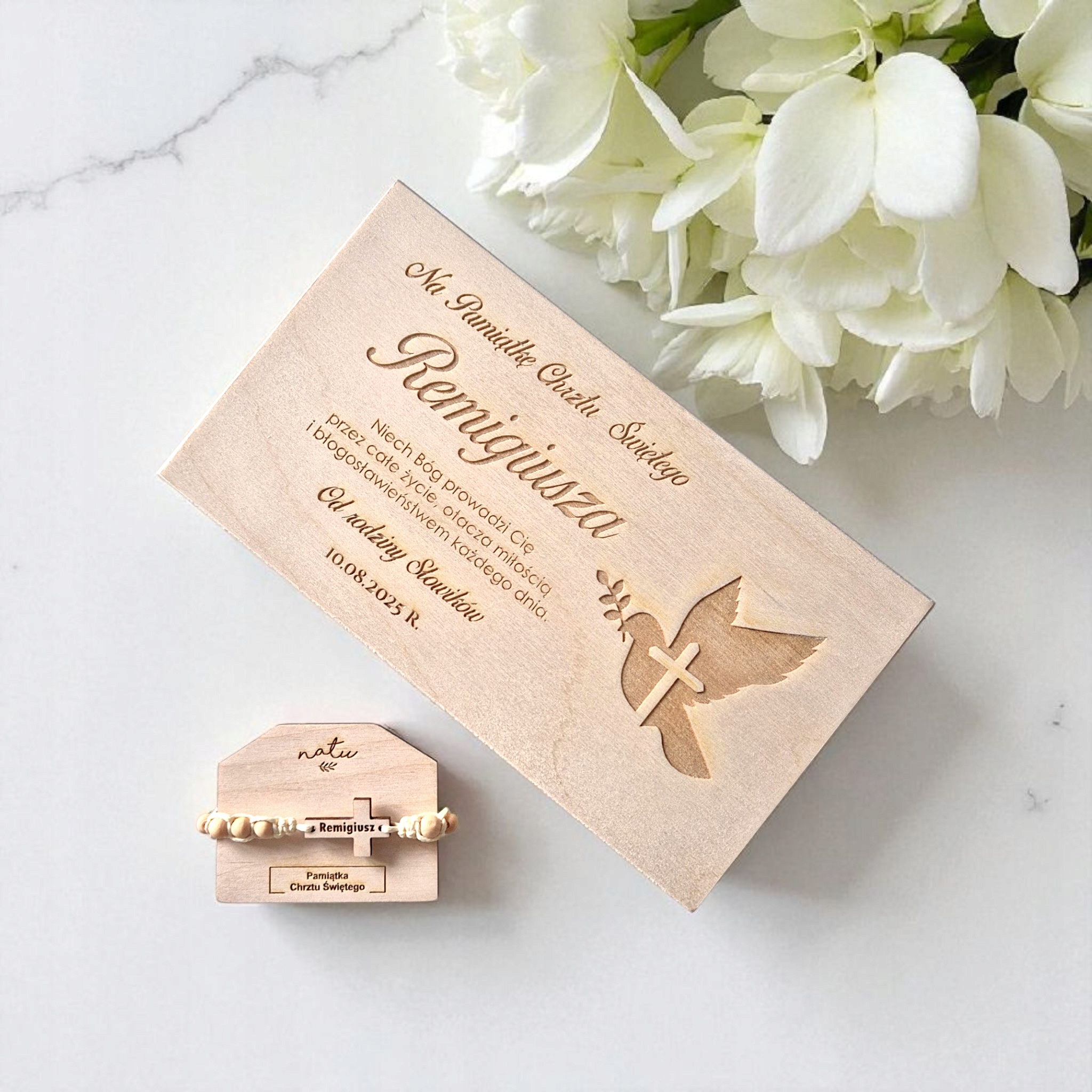 Скарбничка з гравіюванням + плетений браслет на чотки на Хрещення - унікальний подарунок з душею!