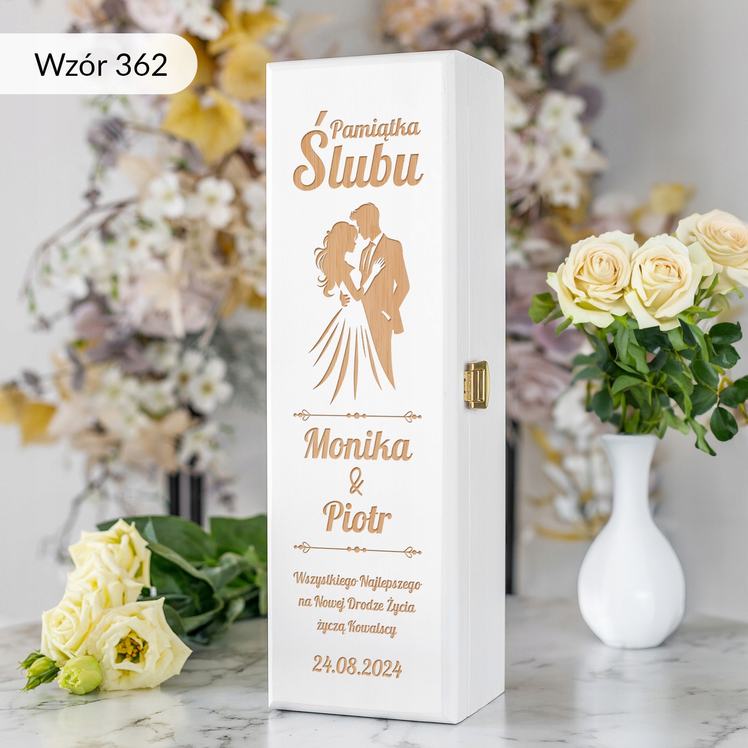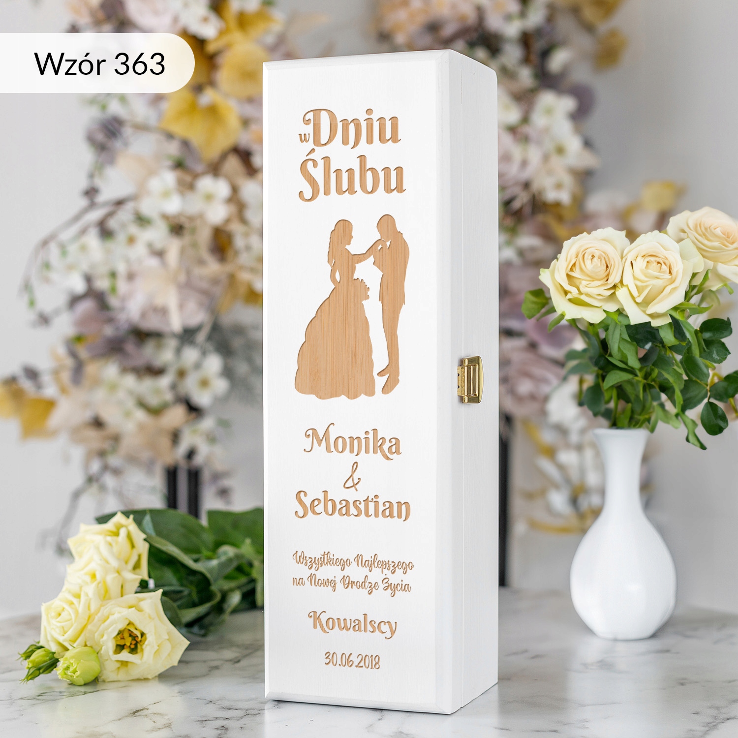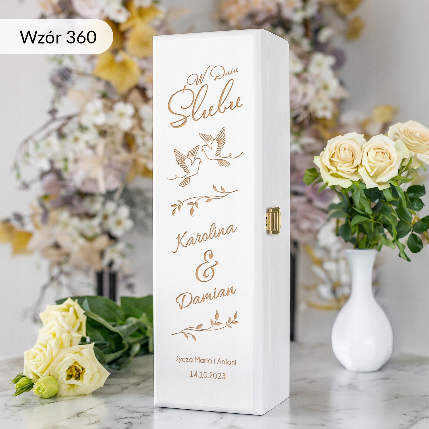 ПОДАРУНОК ДЛЯ НОВОЇ ПАРИ КОРОБКА БІЛОГО ВИНА З ГРАВІЮВАННЯМ ВЕСІЛЬНИЙ ПОДАРУНОК