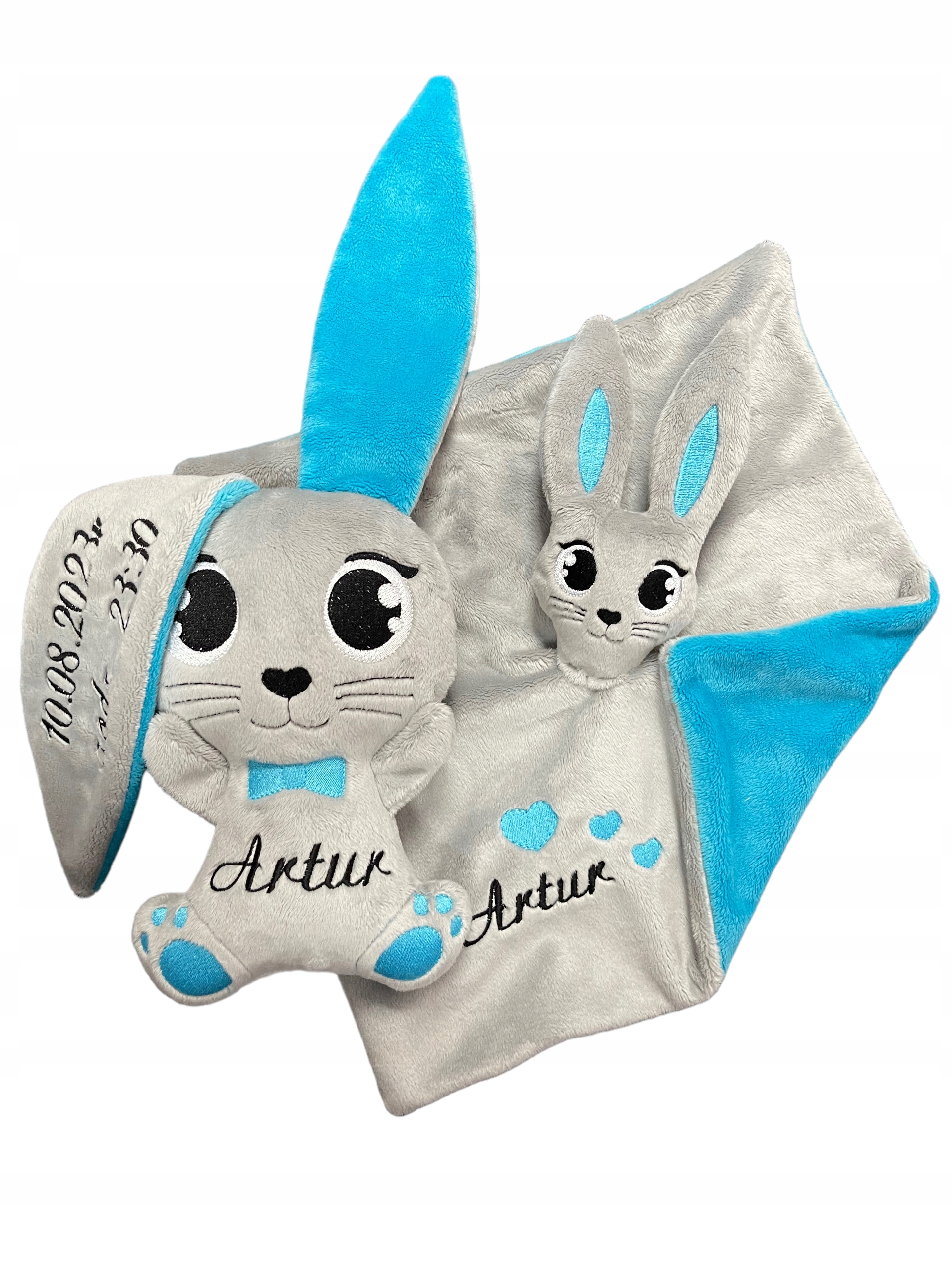 рука -вироблено в мальовничому селі в Кашубії - 100% польської якості! Наш плюшевий зайчик - це не лише чарівний талісман, але й унікальний сувенір . Завдяки можливості персоналізації - вишиті імені та метрики - це стає унікальним подарунком для кожної дитини.