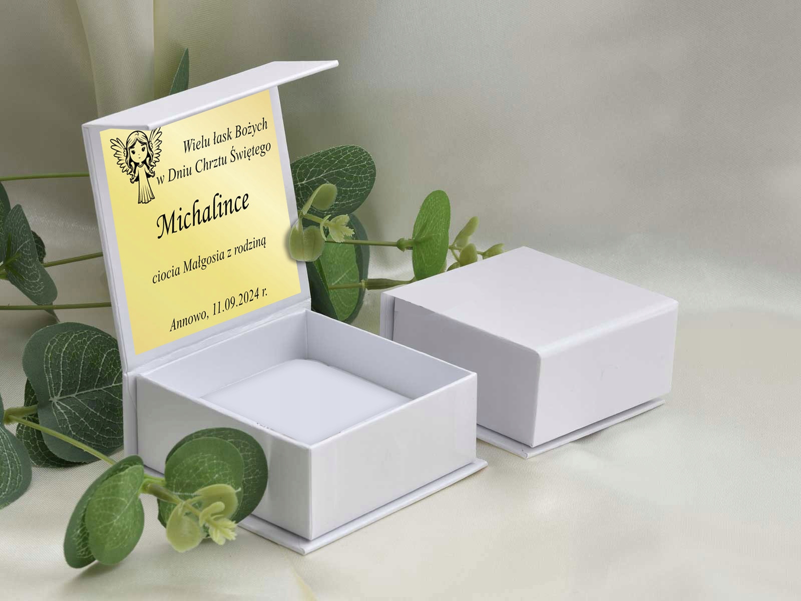 Ми додаємо дуже приємну коробку для замовлення - магнітне закриття - безкоштовно. Можливість присвятити у вікні (шаблони табличок, які можна вибрати нижче)