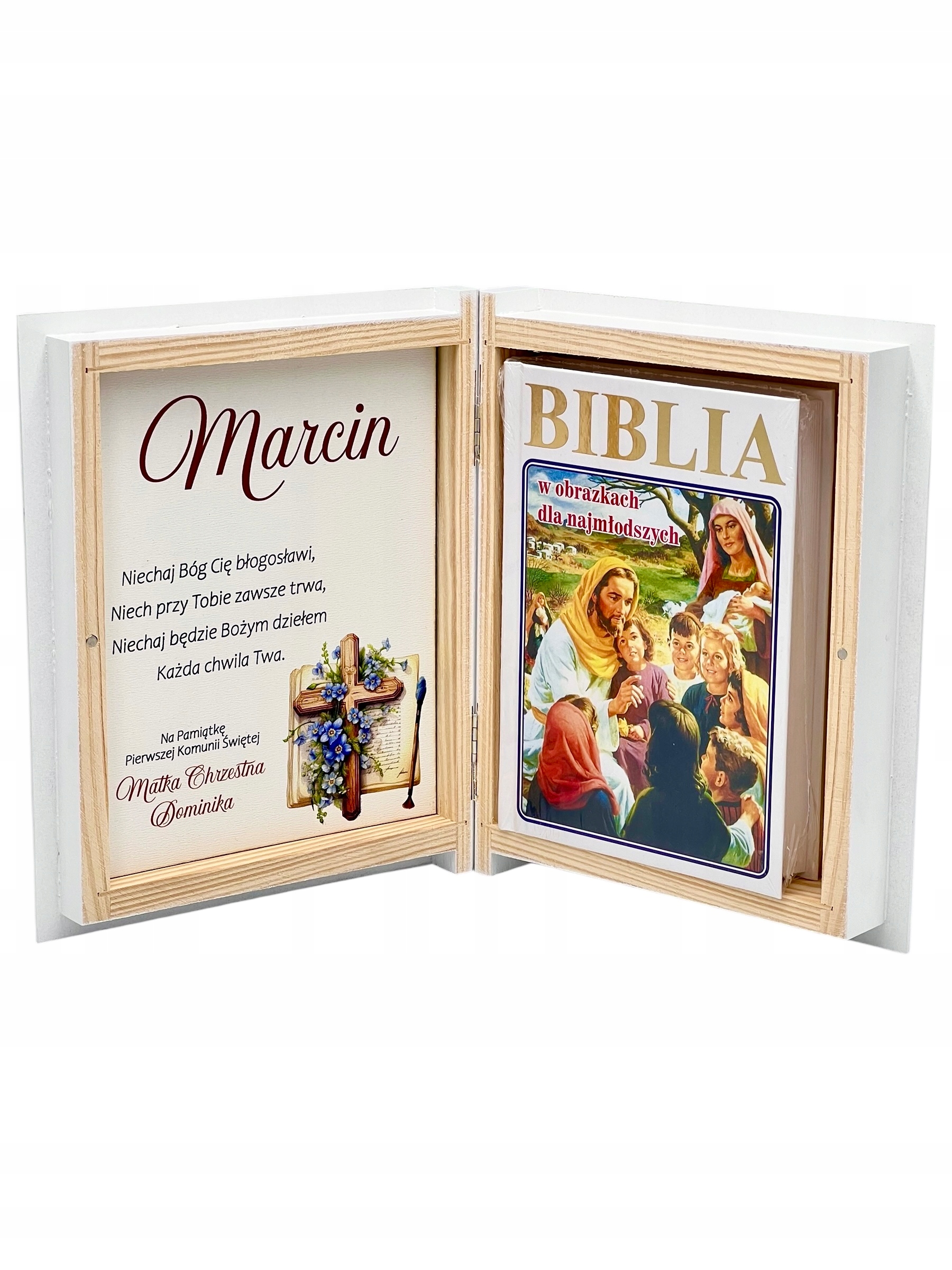 ✳ Елегантна, біла коробка ✳bibibia на знімках для наймолодших ✳prople Pine Wood ✳ Персоналізовані побажання ✳lea -добра застібка ✳wysoka. Якість виготовлення ✳inal Причастя |