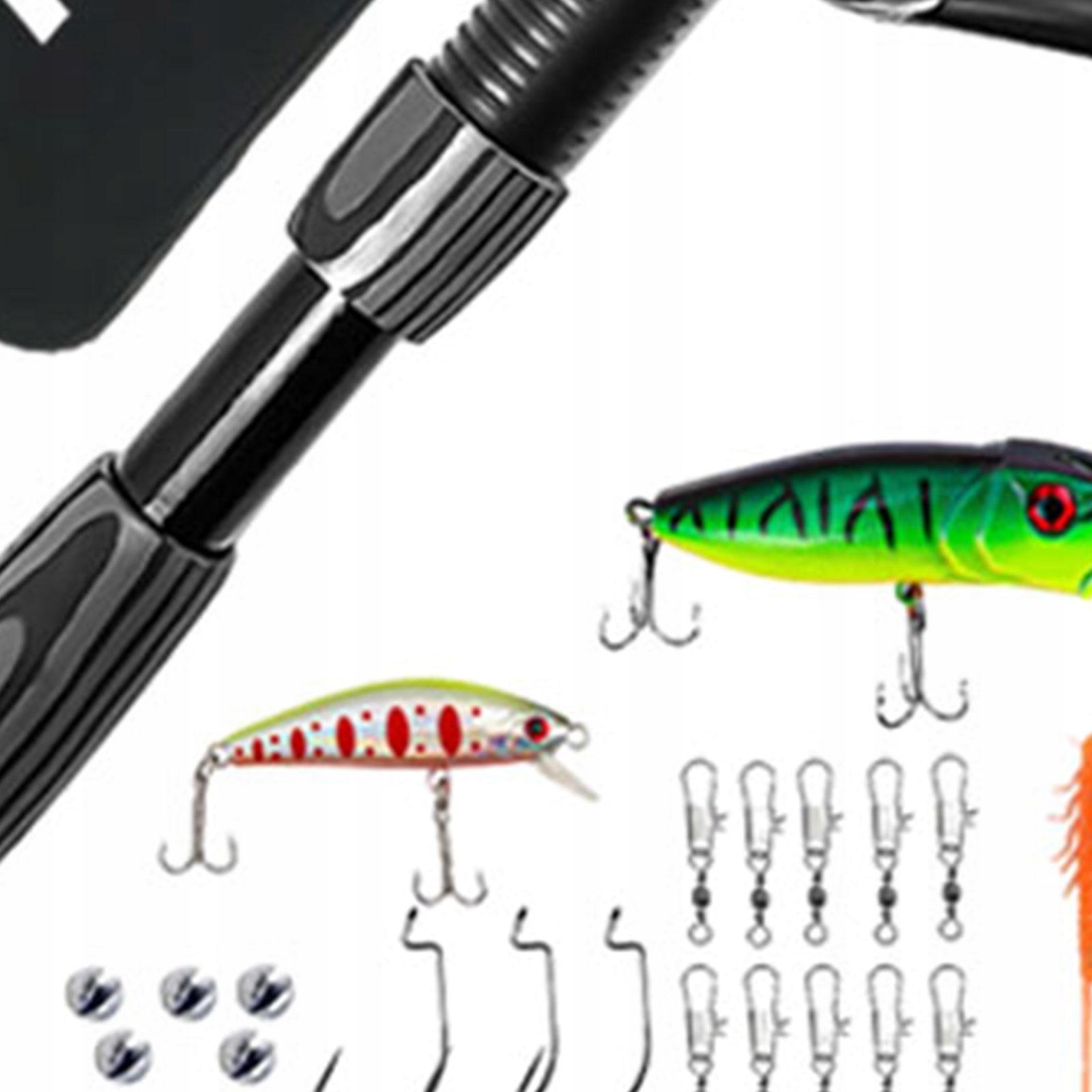 [Повний рибальський набір]: цей набір включає всі необхідні аксесуари для риболовлі, такі як котушка, волосінь і гачки, тож ви можете почати рибалити відразу без жодних додаткових покупок