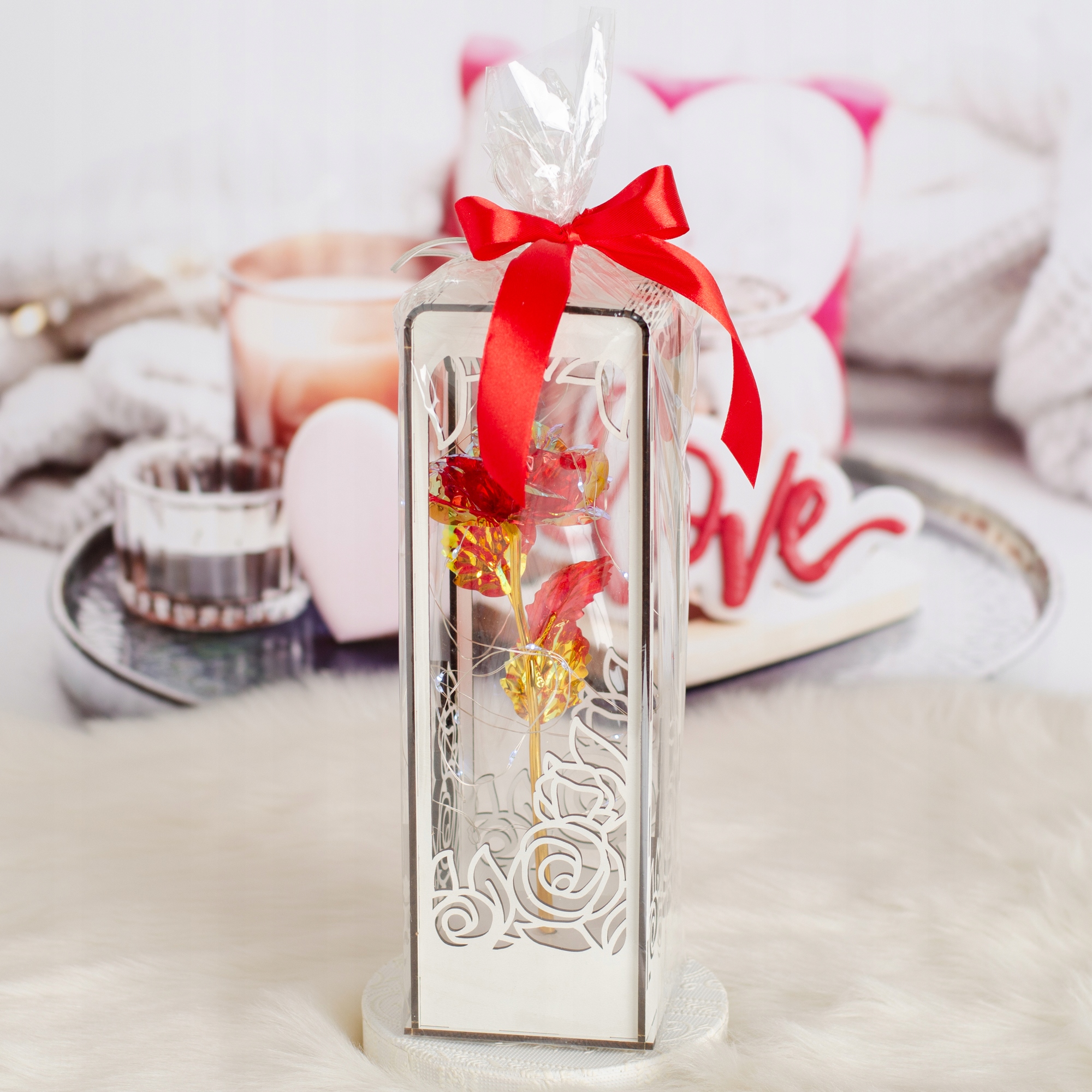 Подарунок до Дня бабусі та дідуся. Вічна троянда з вигравіруваним підписом