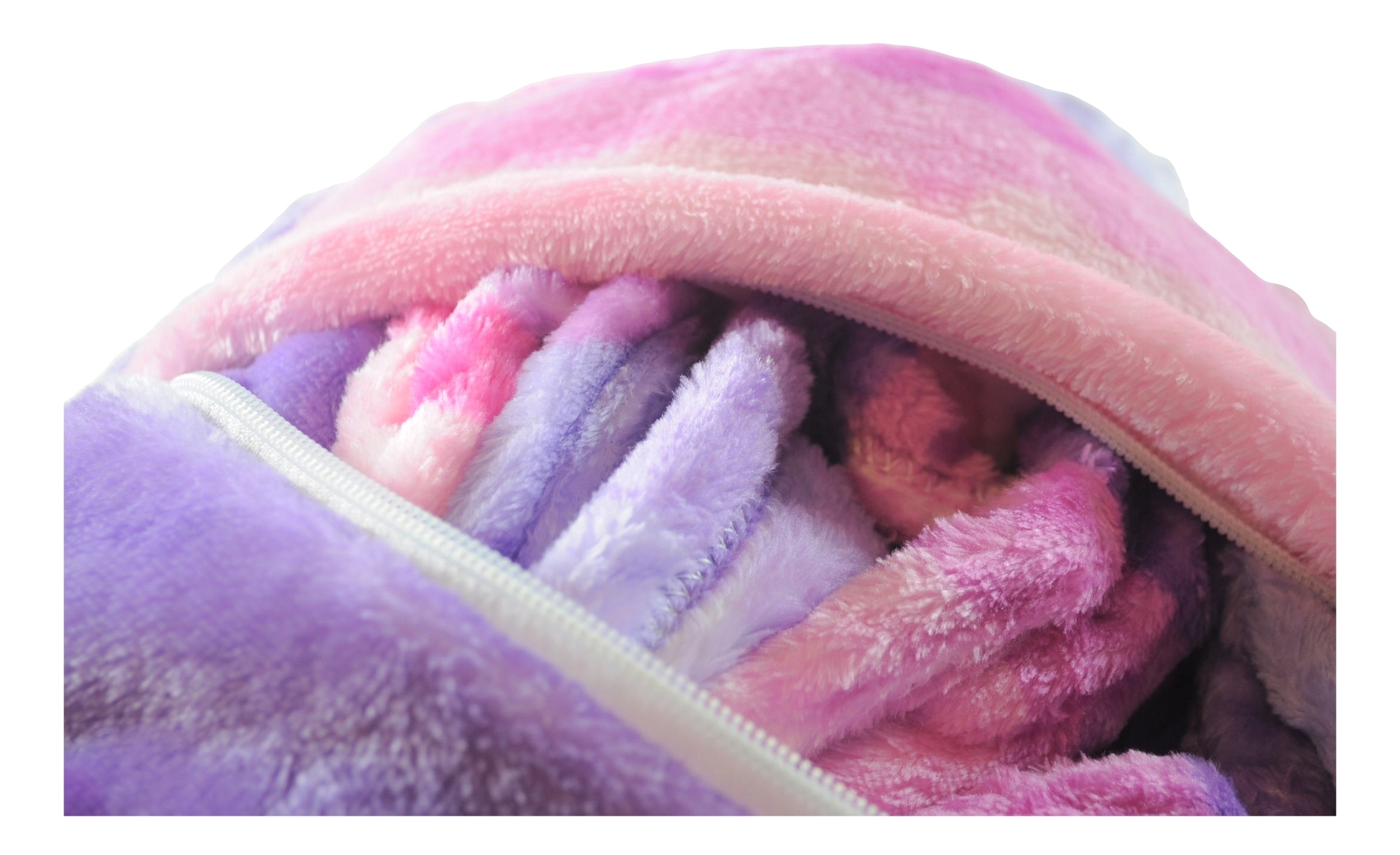 Подушку можна використовувати як повну постільну білизну для малюків і дітей старшого віку. Після розстібання блискавки всередині знаходиться м'яка, приємна на дотик флісова ковдра. У верхній частині подушки є миле сердечко з написом "I love you".