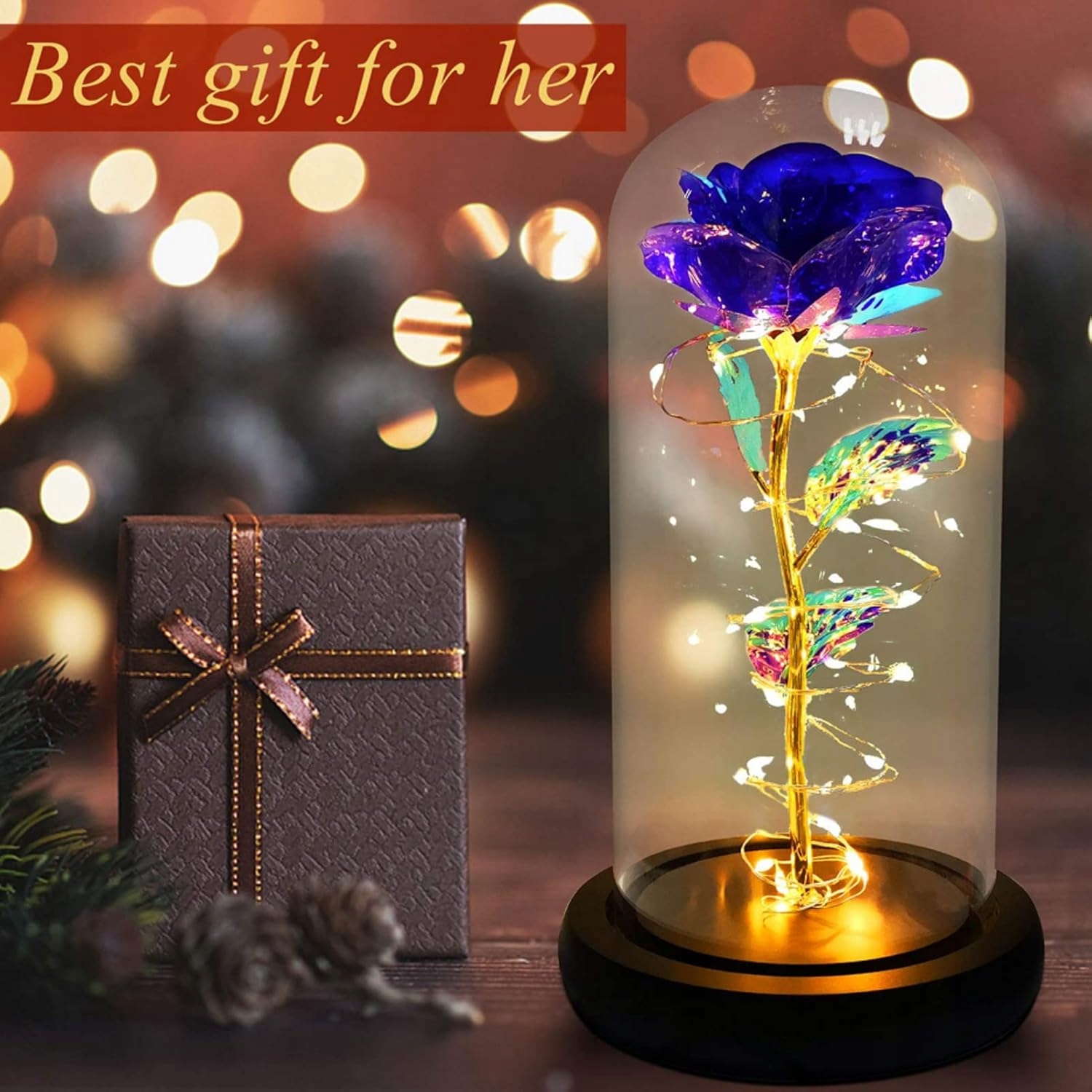 ✅Елегантний скляний купол – дозволяє милуватися трояндою з усіх боків на 360°.