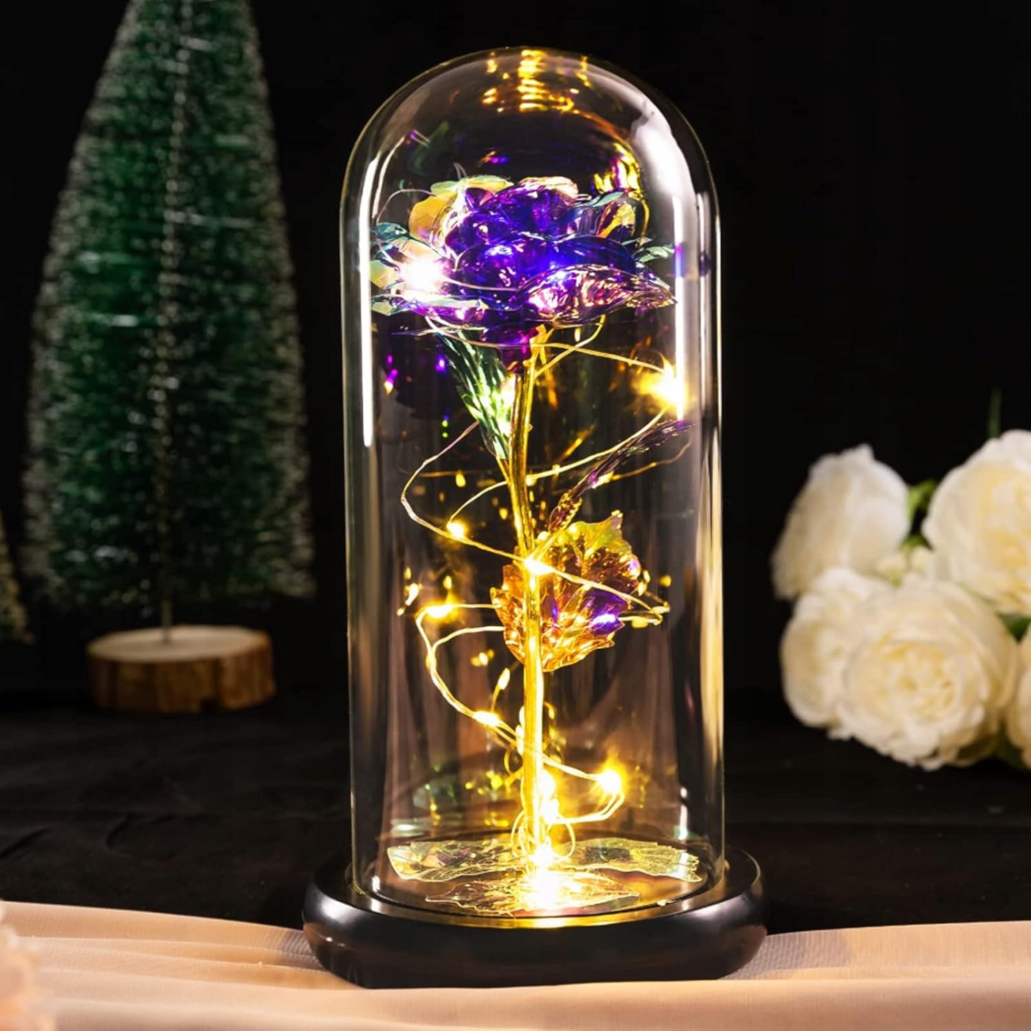 ПОДАРУНОК ДО ДНЯ СВЯТОГО ВАЛЕНТИНА ВІЧНА ТРОЯНДА СВІТЛОВИЙ СВІТЛОДІОД ФІОЛЕТОВИЙ У КВІТКОВОМУ КУПОЛІ