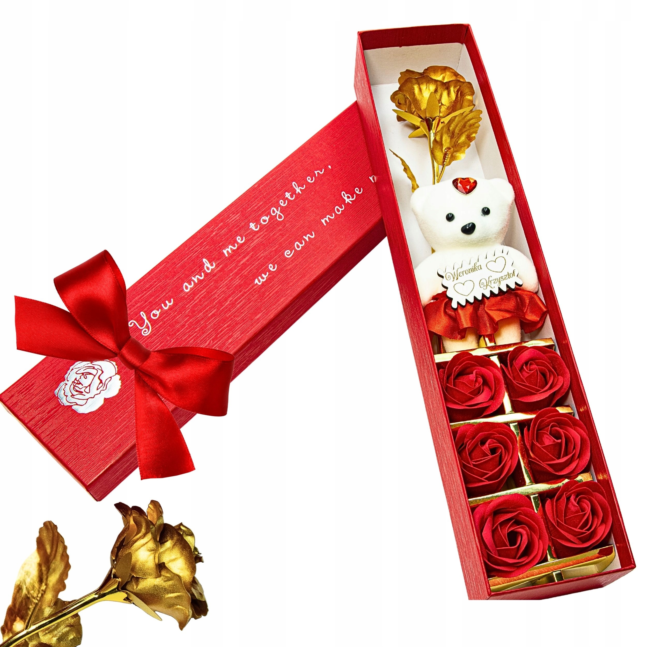 Шукаєте подарунок, який зворушить вас і запам'ятається надовго? Перед вами унікальний набір, який радує своїм шармом і глибокою символікою. В елегантній коробці ви знайдете персоналізованого ведмедика, золоту Вічну троянду та шість червоних мильних троянд. Це ідеальний спосіб висловити свої почуття з будь-якої особливої події.