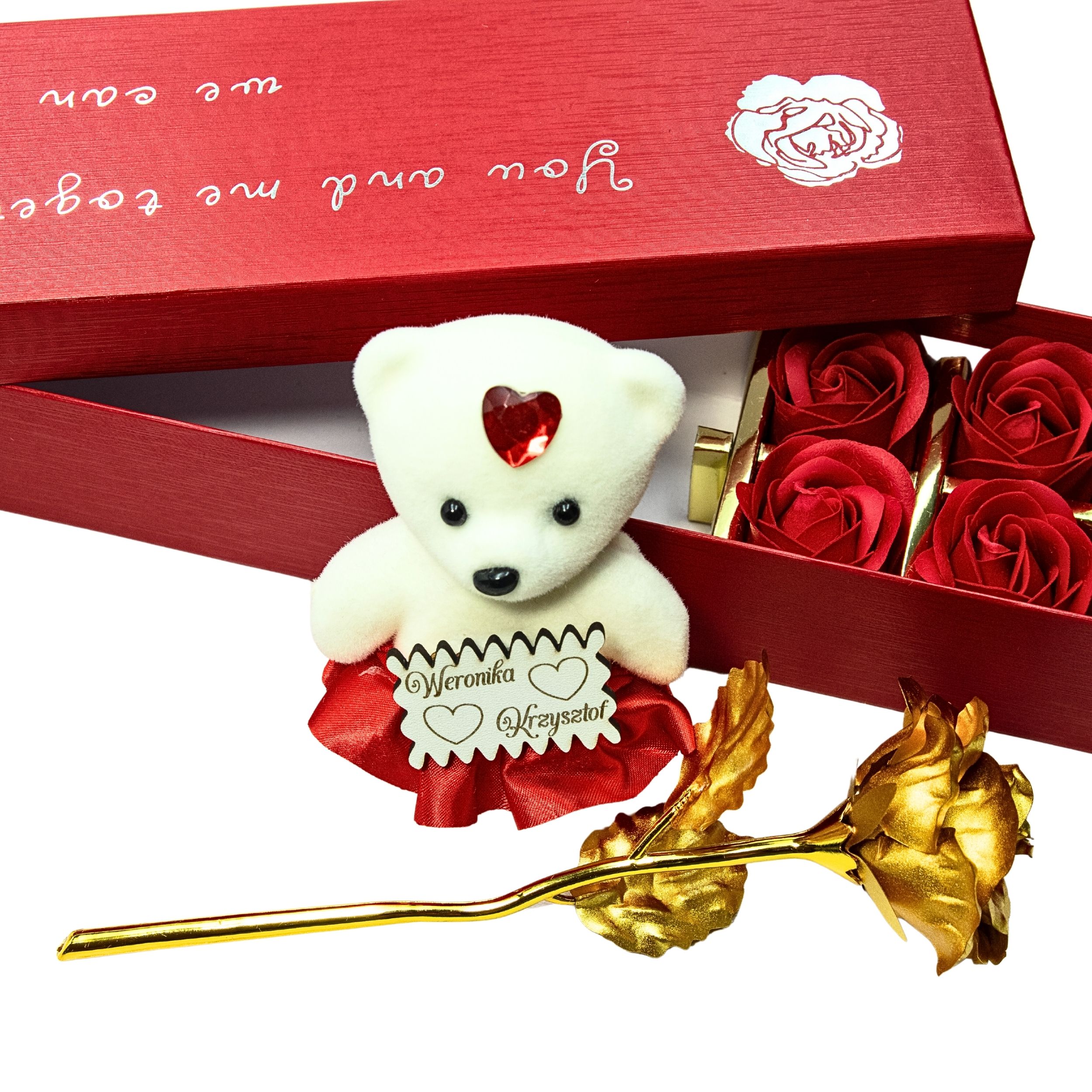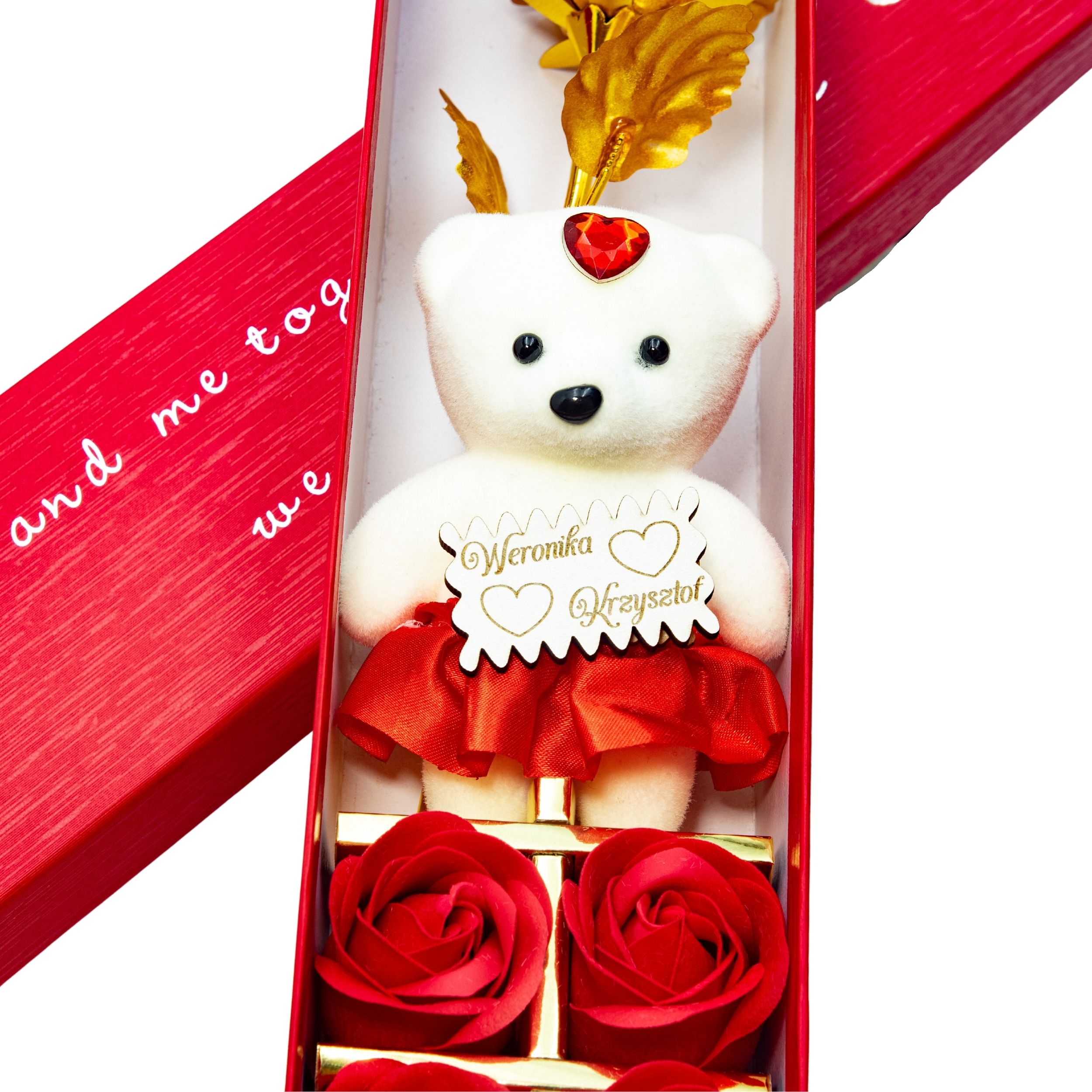 ПОДАРУНОК ДО ДНЯ СВЯТОГО ВАЛЕНТИНА ВІЧНА ТРОЯНДА ВЕДМЕДИК З ІМЕНАМИ Мильні троянди для неї