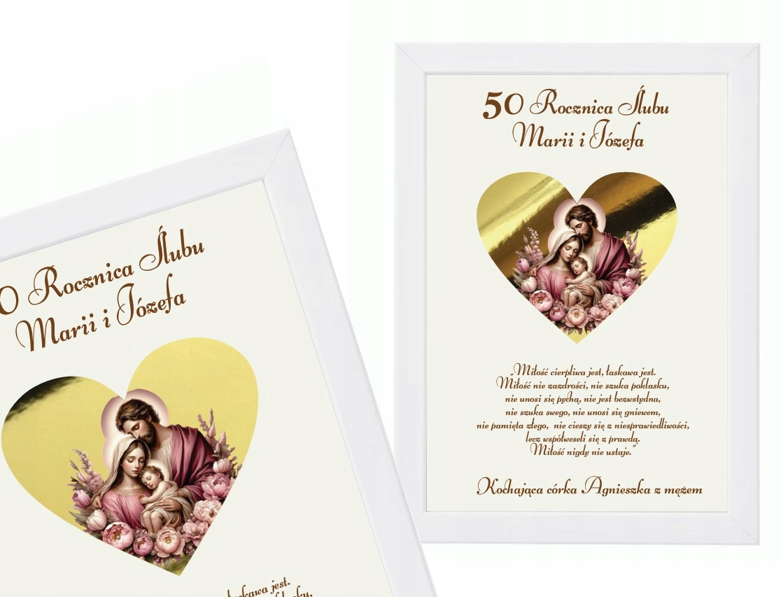 ✅На рамці велике золоте серце з барвистим принтом Святого Сімейства