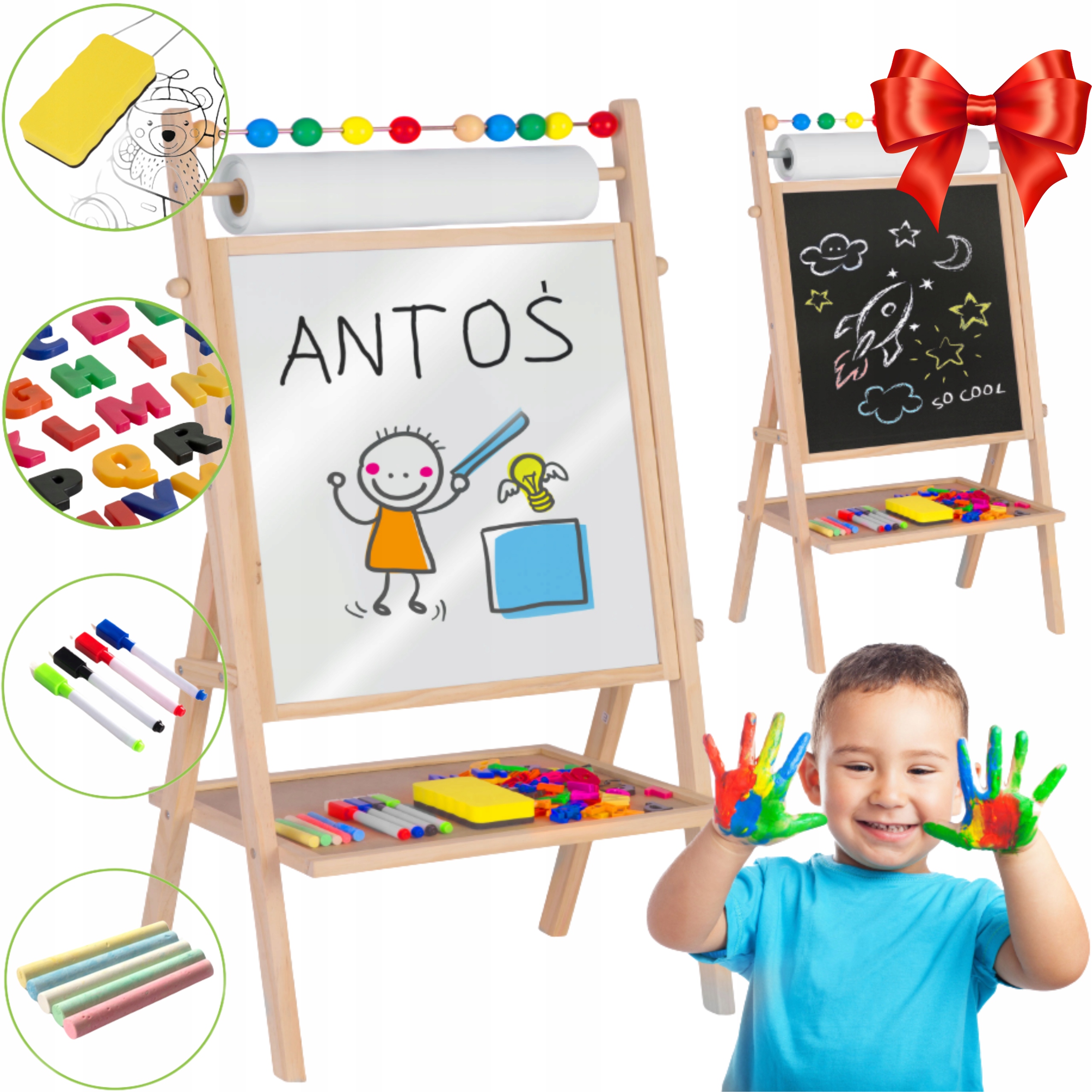 ПОДАРУНОК ДВОСТОРОННЯ НАВЧАЛЬНА МАГНІТНА КРЕДЯНА ДОШКА + АКСЕСУАРИ + ПАПІР