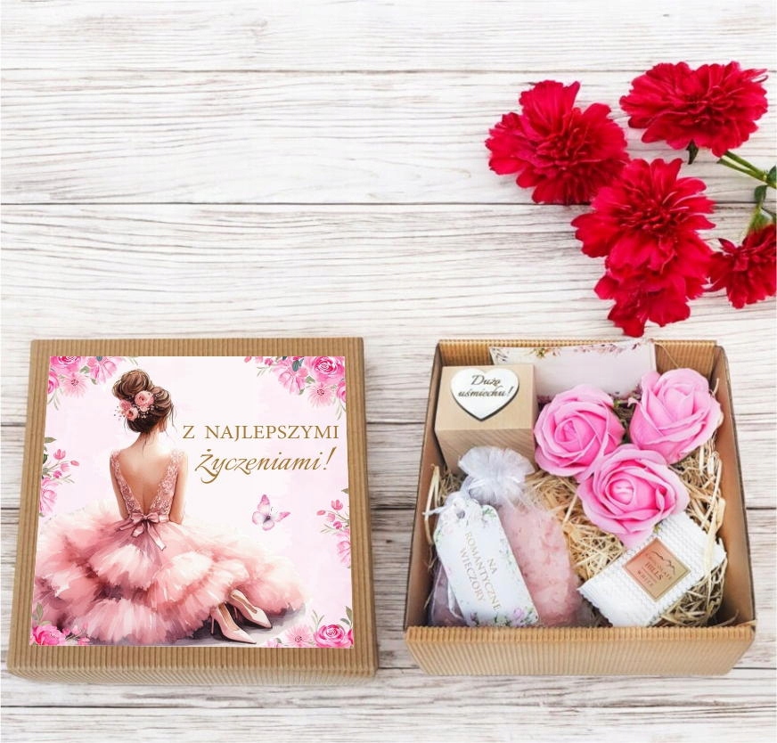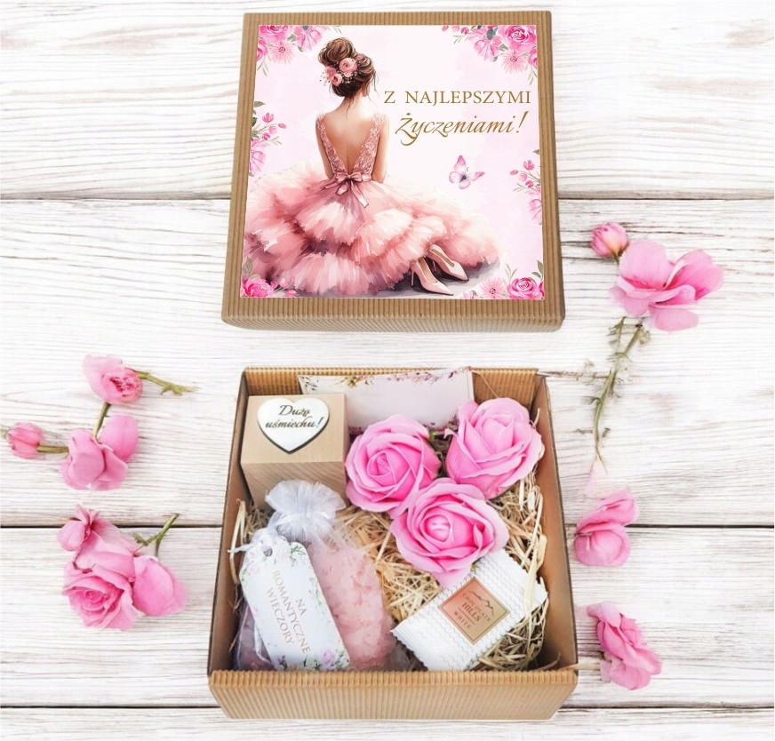 До коробки можна додати свій персональний подарунок - листівку з особистими побажаннями, улюблений шоколад або фото. Це зробить подарунок ще більш особливим і унікальним.