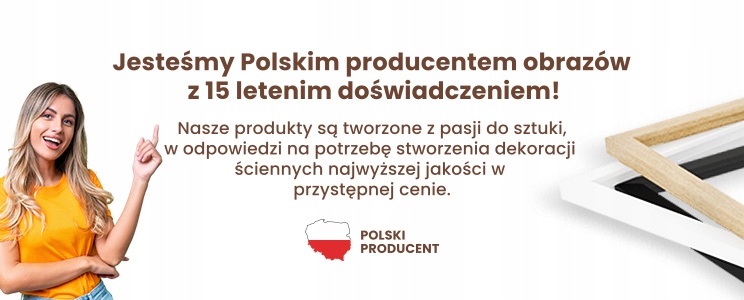 Ми є польським виробником, який захоплений створенням унікальних прикрас для стін. Кожен наш продукт створено з особливою ретельністю та увагою до деталей, щоб відповідати очікуванням наших клієнтів. Від дизайну, через друк і до палітурки – весь процес виробництва відбувається в Польщі. Завдяки цьому ми можемо гарантувати високу якість, довговічність і унікальний дизайн, який ідеально доповнить будь-який інтер'єр. Обираючи наші продукти, ви підтримуєте польську майстерність і обираєте надійність, на яку можете покластися.