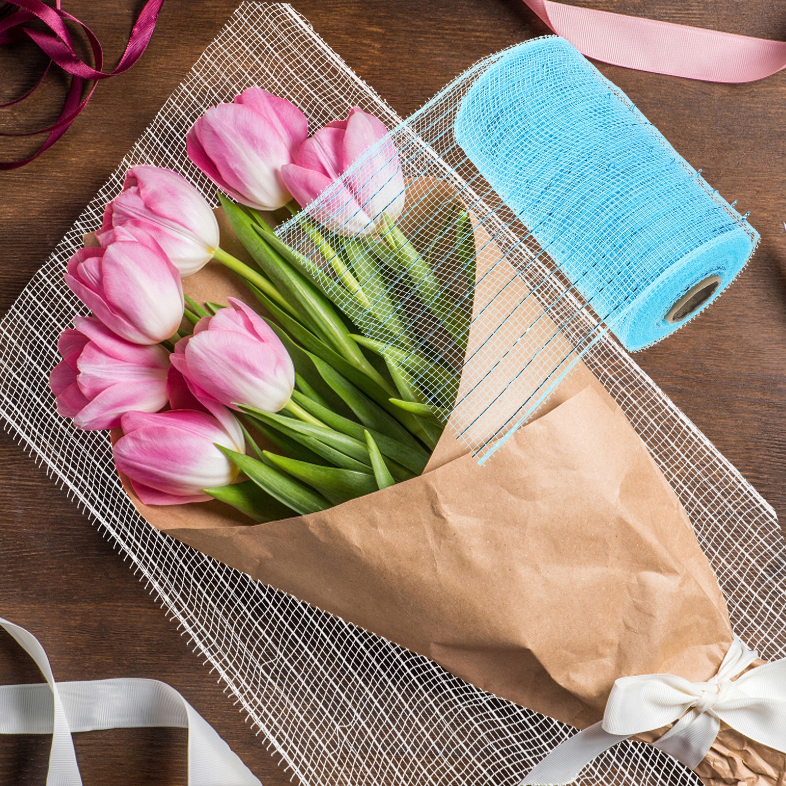 ПОДАРУНОК КВІТКОВОГО БУКЕТА 2 РУЛОНИ ШИРОКОЇ СТРІЧКИ
