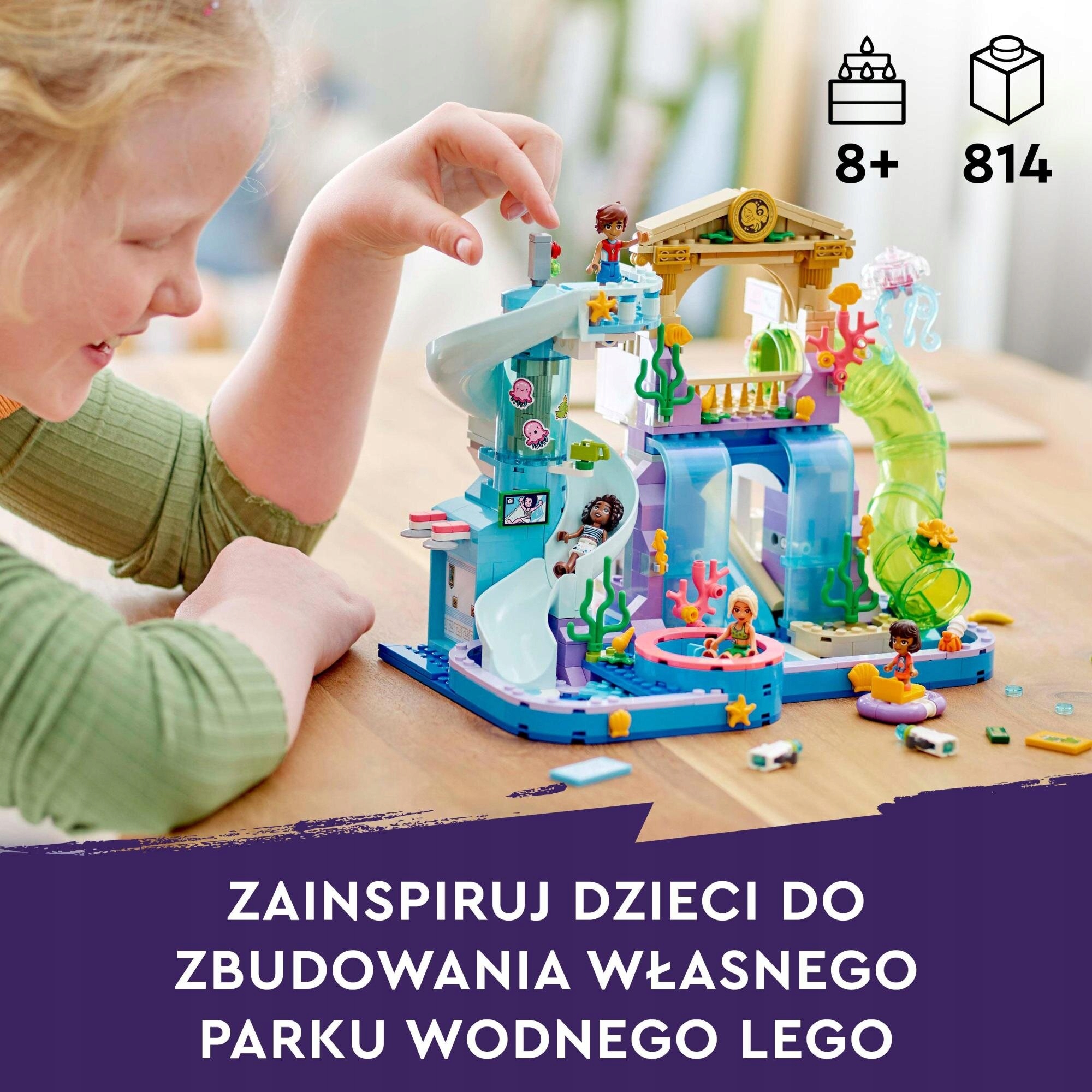 Цей конструктор LEGO для дітей наповнений деталями аквапарку. Має душ, роздягальню, шафки та закуски, щоб діти могли годинами насолоджуватися творчими іграми. Відкрийте для себе інші подарунки LEGO Friends на день народження для дітей (набори продаються окремо). У набір входить програма LEGO Builder, яка дозволяє інтуїтивно зрозуміле будівництво.