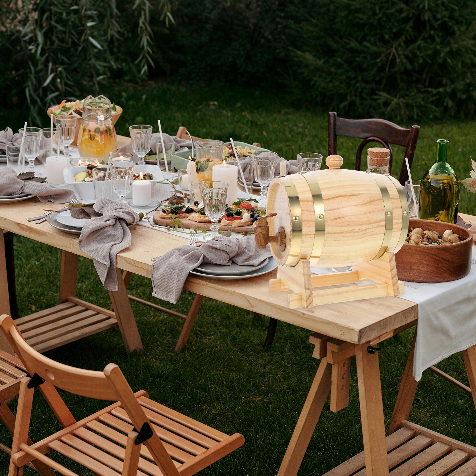 ✅ Ідеально підходить для зустрічей на відкритому повітрі чи пікніків, ця дубова бочка додає сільського стилю чарівність на будь-який випадок.