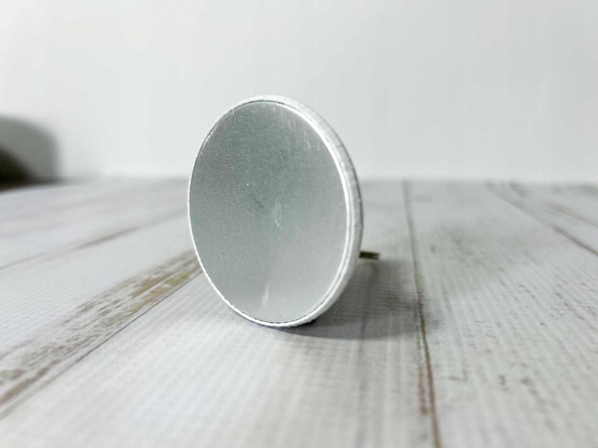 алюмінієва задня частина, плоска, із сильним неодимовим магнітом, постійно розміщеним усередині бейджа. Після згортання бейджа магніт взагалі не видно