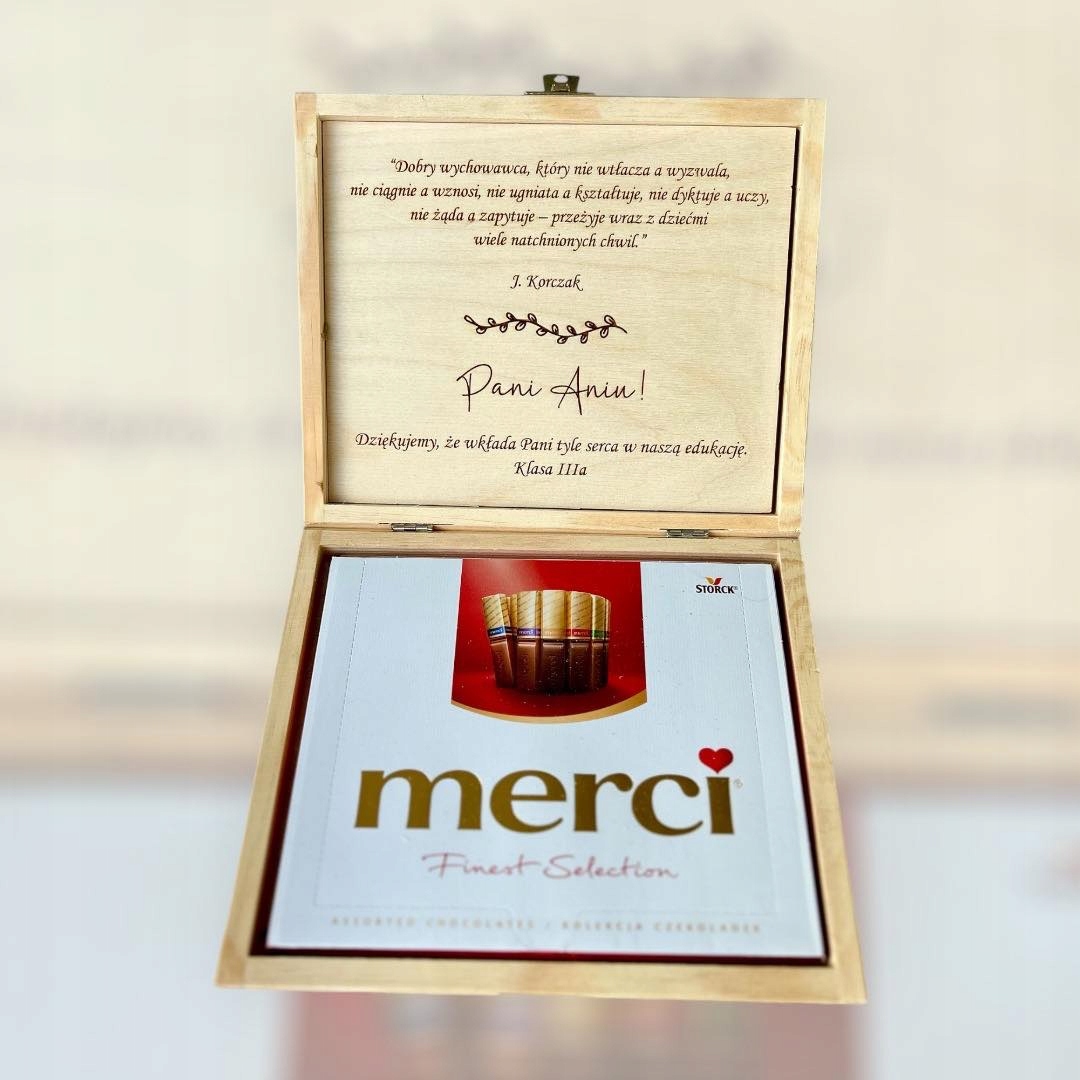 Дерев'яна коробка для маленьких шоколадних цукерок MERCI з застібкою