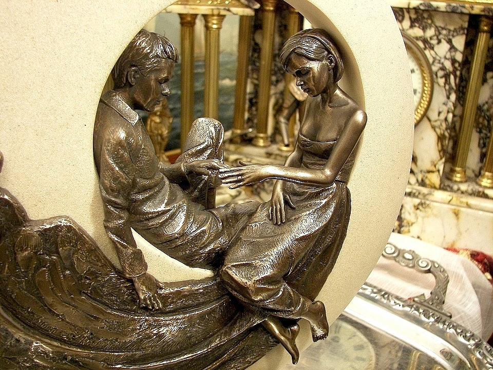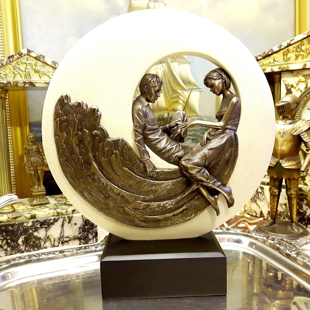 Запрошую придбати чудову скульптуру, що символізує закохану пару, замкнуту в колі кохання. Колесо кріпиться на тумбу.Все це дуже важке десь 2 кг. На природі виріб виглядає набагато краще. Бренд Veronese гарантує якість та зовнішній вигляд. Вся річ виготовлена з матеріалу полірезин, покритого бронзою.