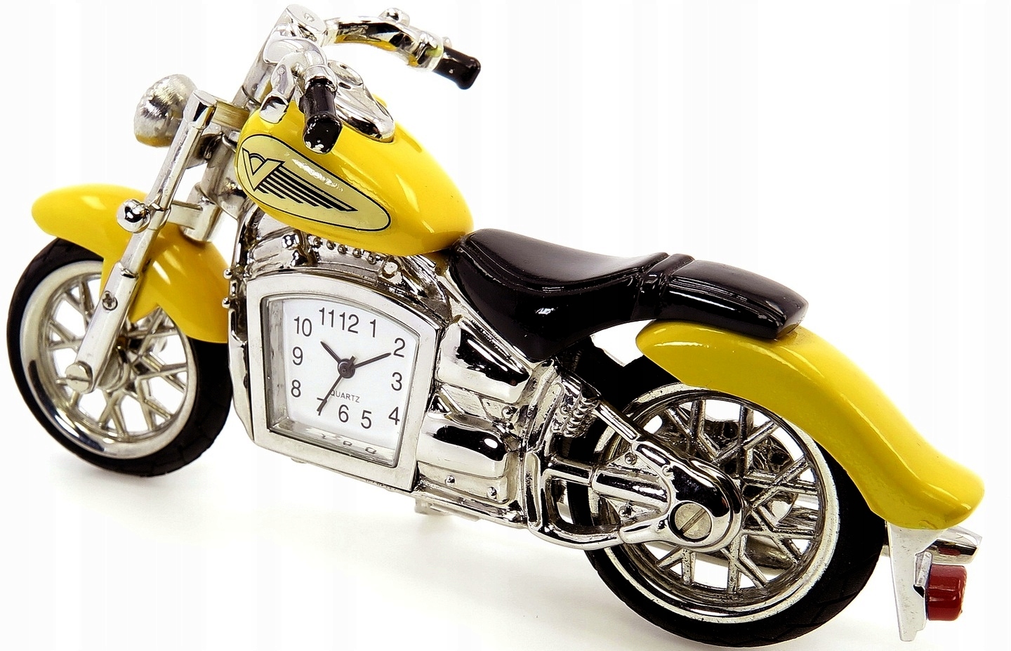 Це надзвичайно красива модель. Повністю металевий, дуже важкий. Кожен дивується, коли бере його в руки. Дуже точно виготовлений і додатково має вбудований годинник. Чудовий подарунок для любителя мотоциклів. Колеса обертаються, кермо рухливе, шини гумові. Гарний лак, приємніше ніж на фото. Чудова іграшка для "великих хлопців"
